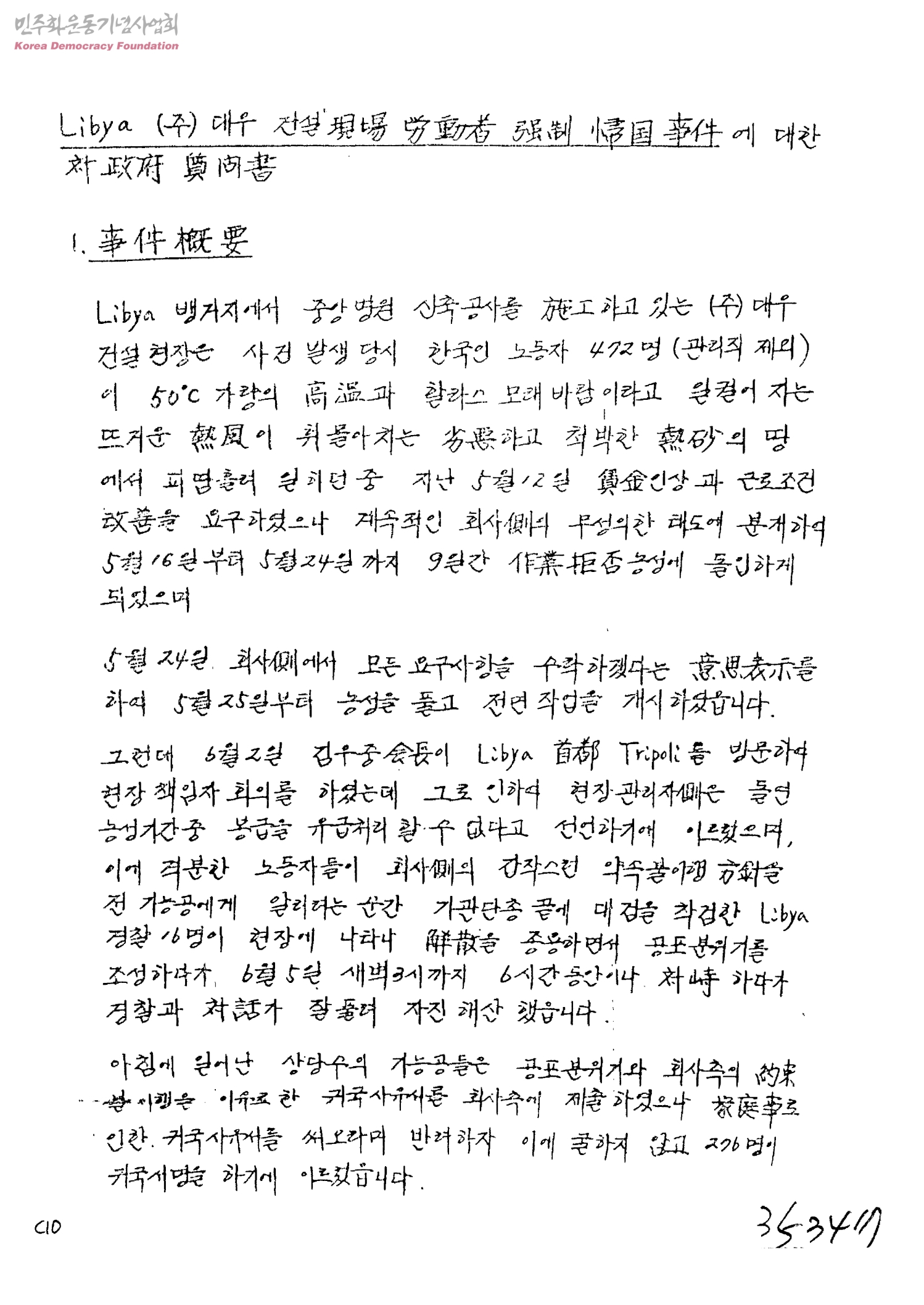 리비아 주)대우 건설현장 노동자 강제귀국사건에 대한 대정부 질의서
