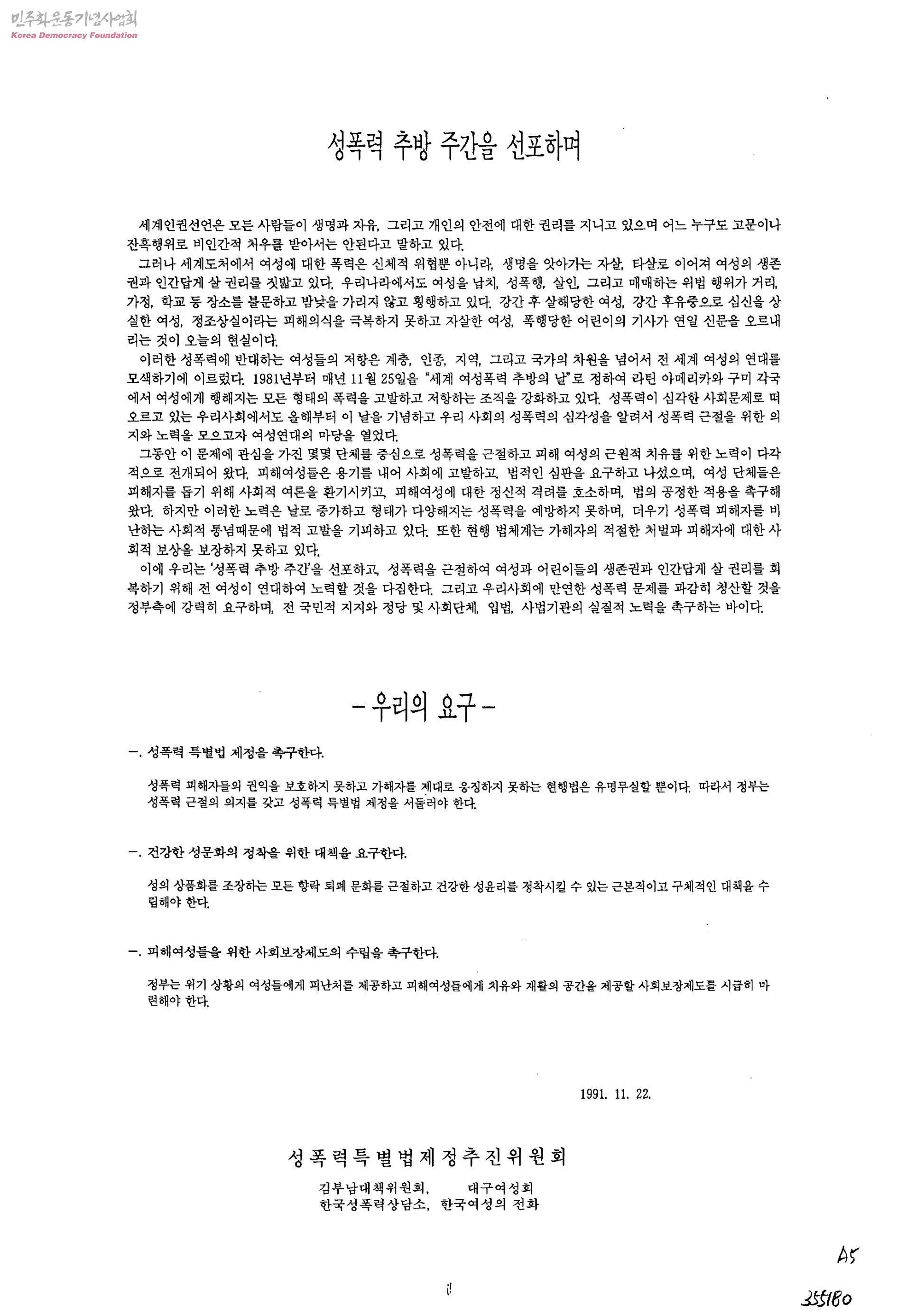 성폭력 추방 주간을 선포하며