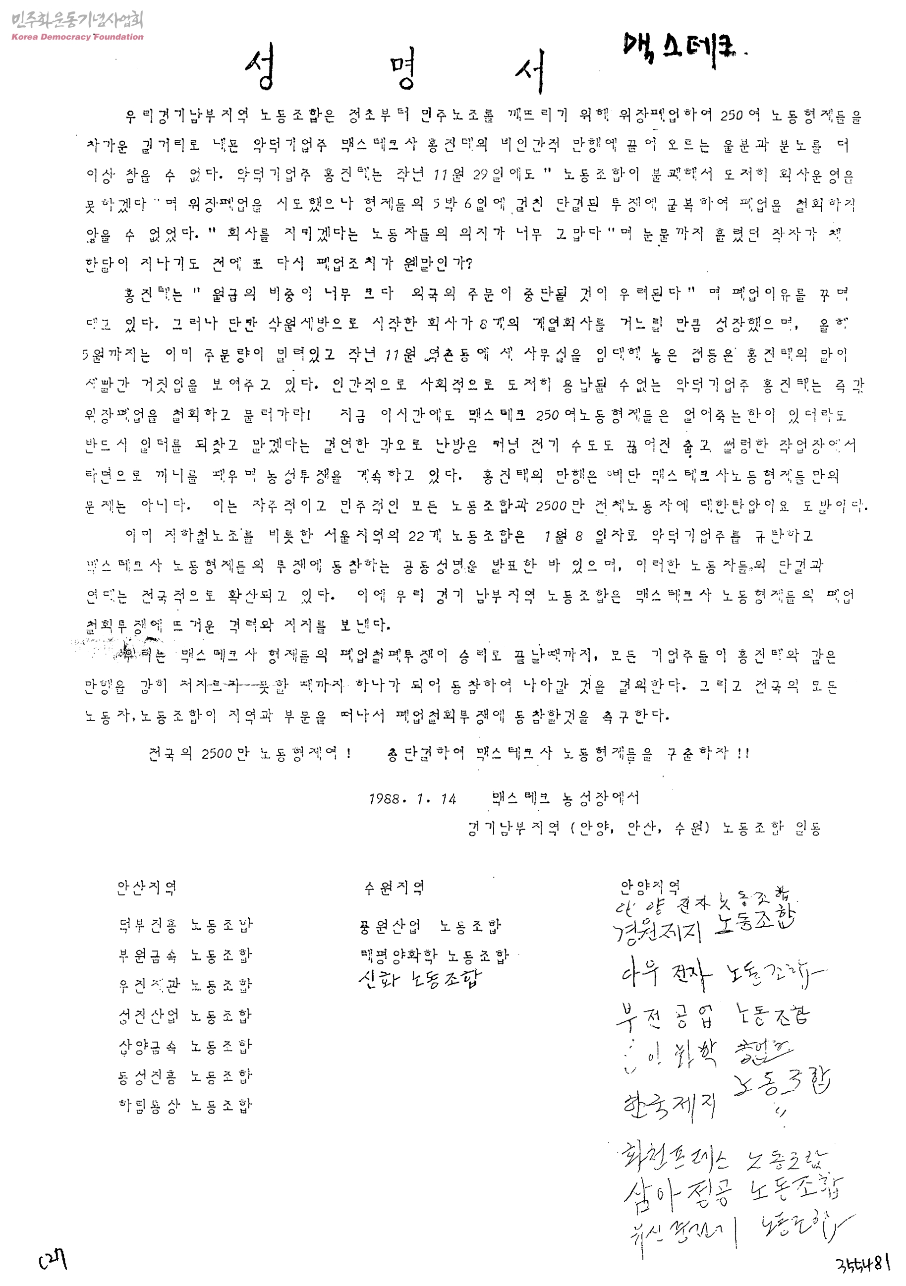 - 경기남부지역(안양, 안산, 수원)노동조합일동