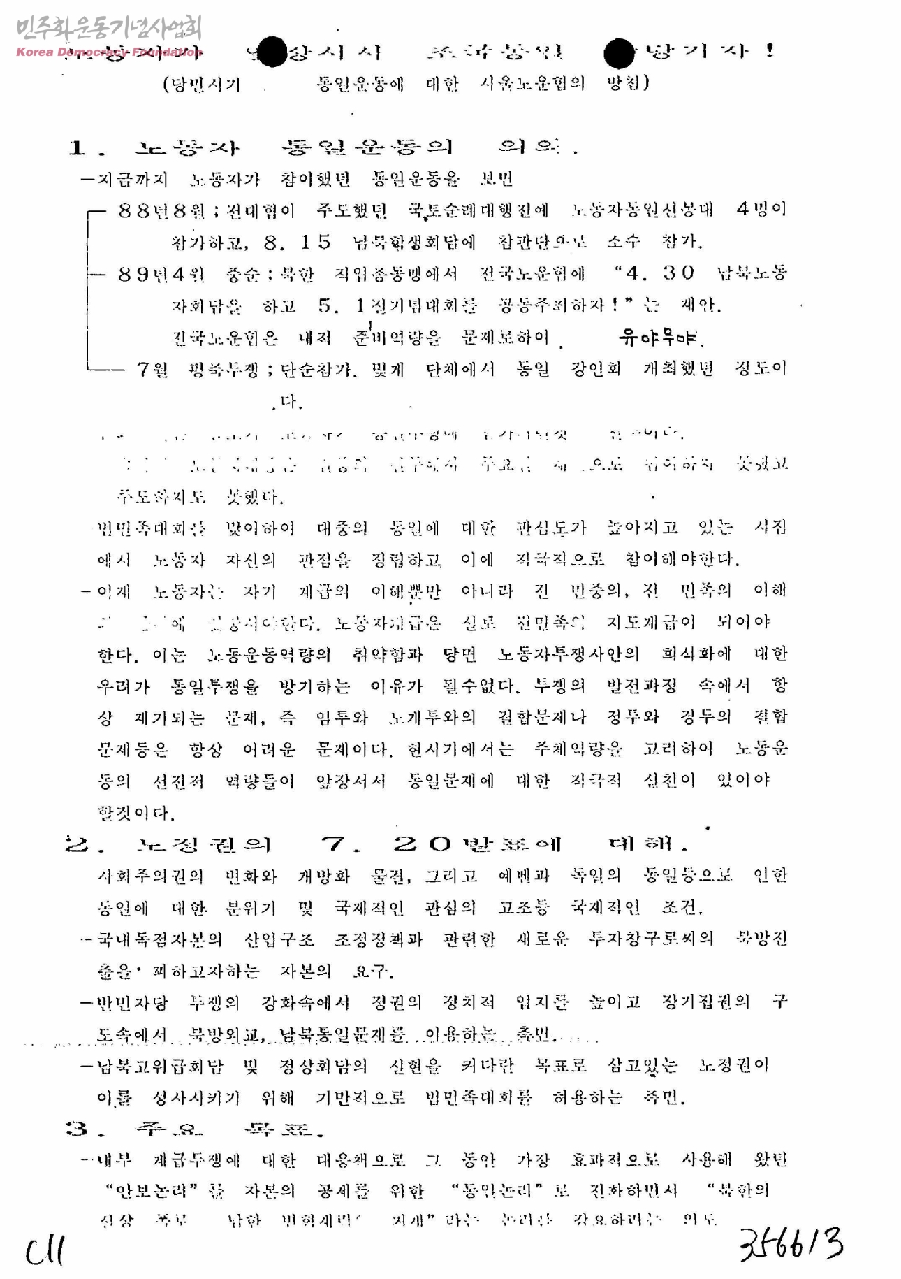 노동자가 앞장서서 조국통일 앞당기자-당면시기 통일운동에 대한 서울노운협의 방침