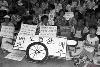 - 생산자 및 기증자가 ‘박용수’인 사진의 사용은 구매신청을 클릭하여 직접 사진 구매 신청을 하실 수 있습니다. 생산자 및 기증자가 ‘경향신문사’인 사진의 사용은 경향신문사 담당자(02-3701-1635)를 통해 구매하실 수 있습니다. 그 외의 생산자 및 기증자는 민주화운동기념사업회 사료관 담당자( h_jungwon@kdemo.or.kr / 031-361-9586 )에 문의바랍니다.