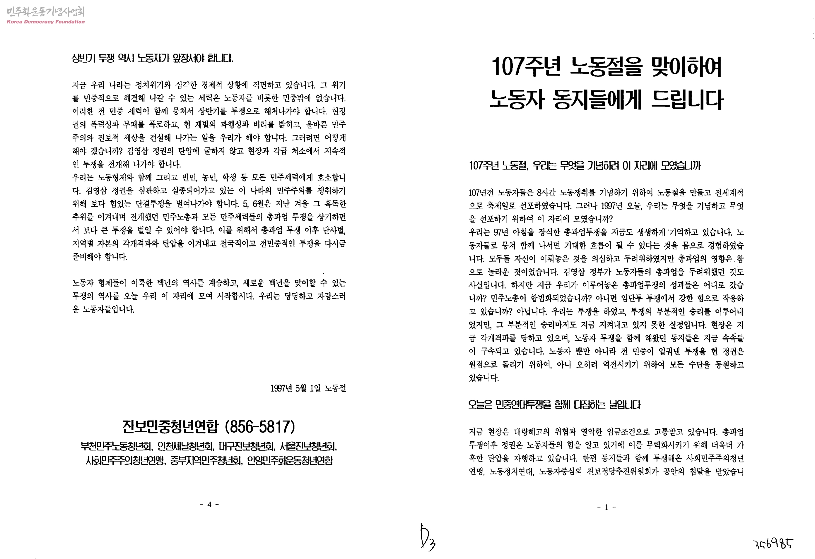107주년 노동절을 맞이하여 노동자 동지들에게 드립니다
