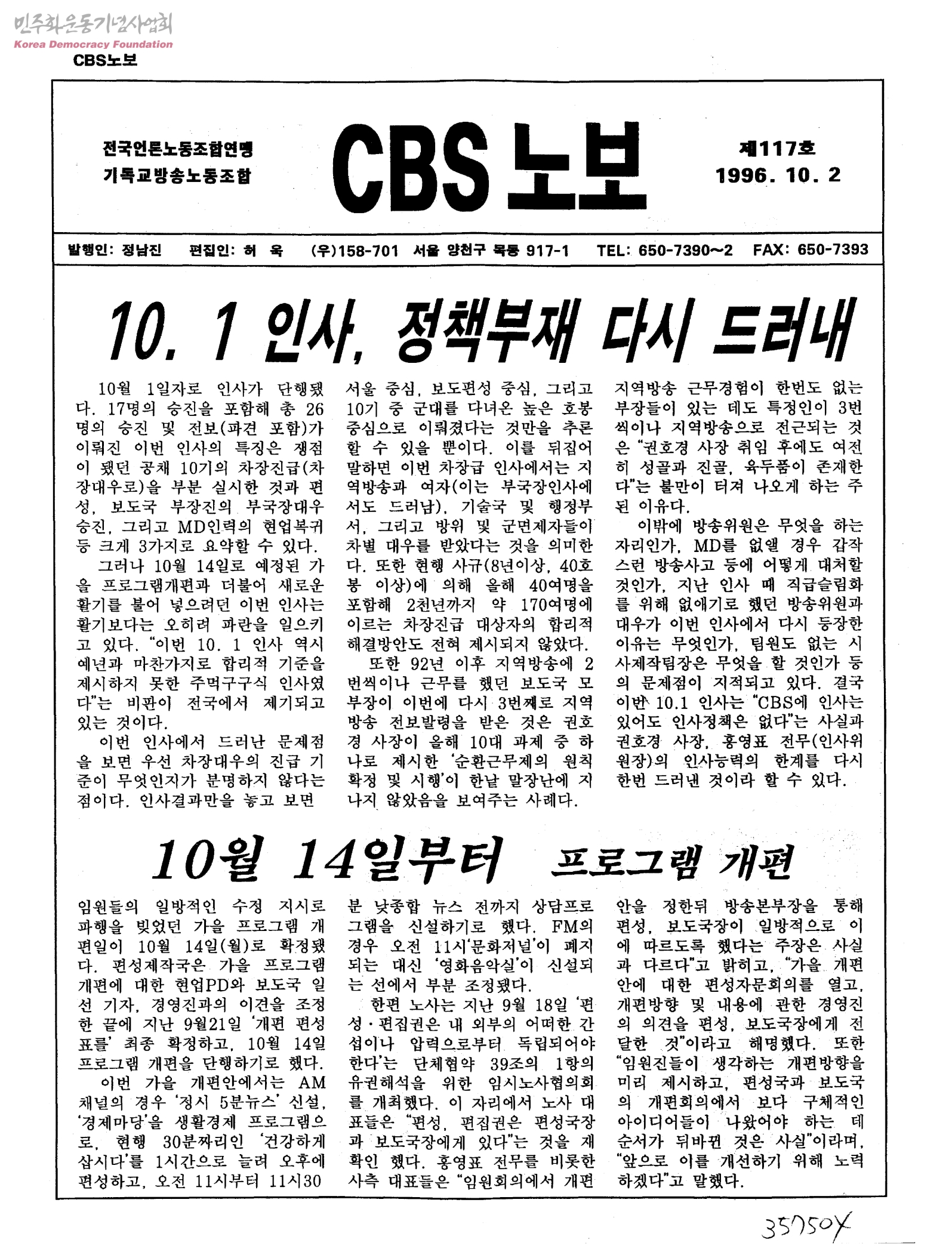 - 전국언론노동조합연맹기독교방송노동조합