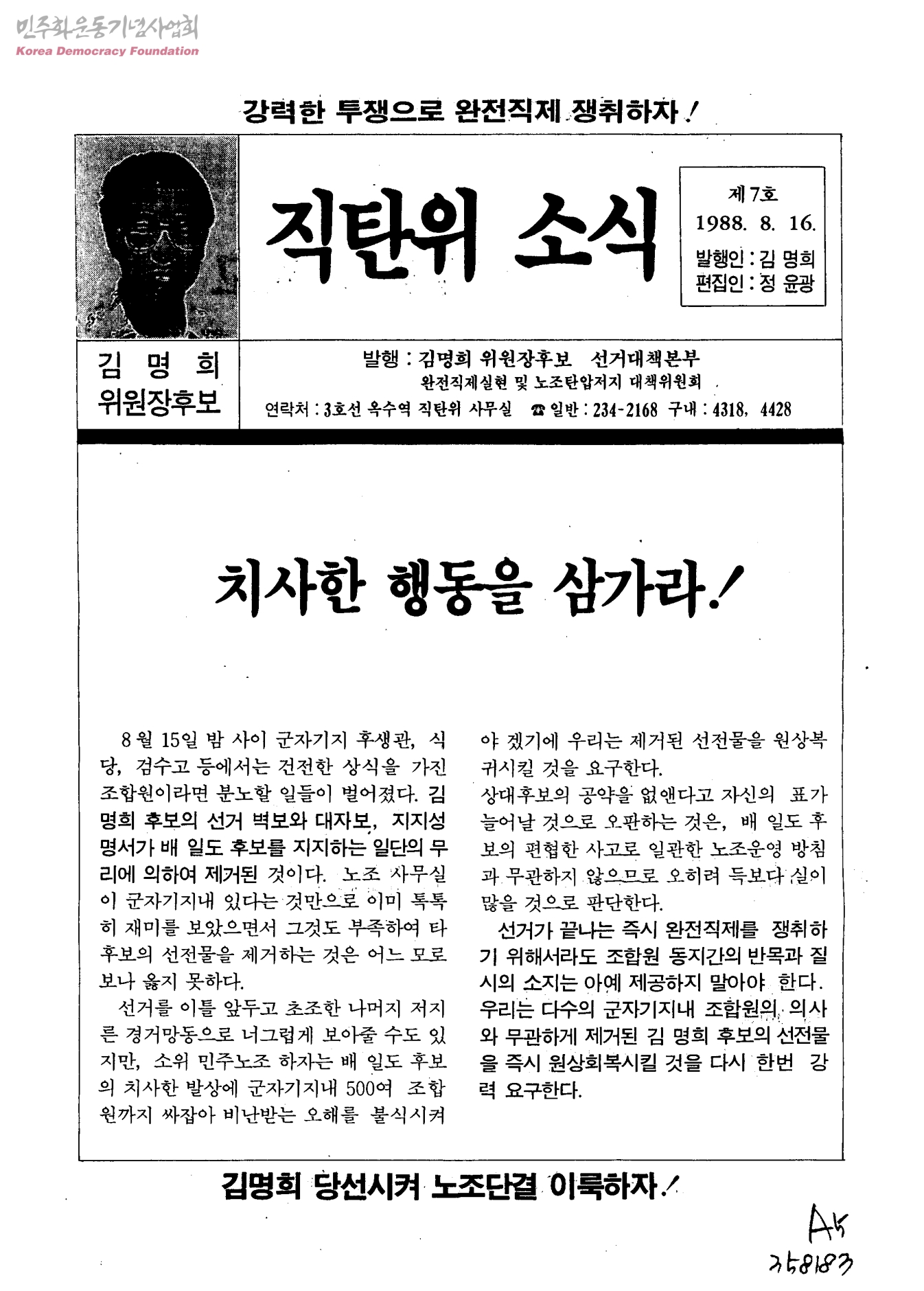 - 완전직제실현및노조탄압저지대책위원회, 김명희위원장후보선거대책본부