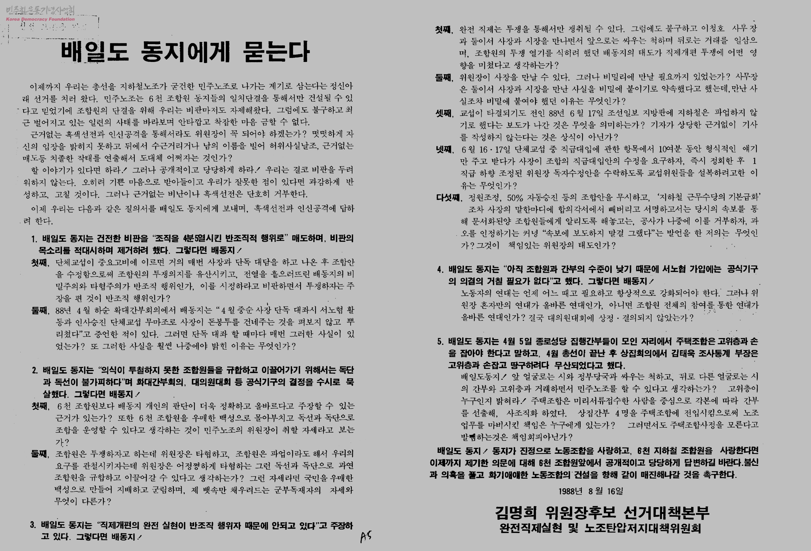 배일도동지에게 묻는다