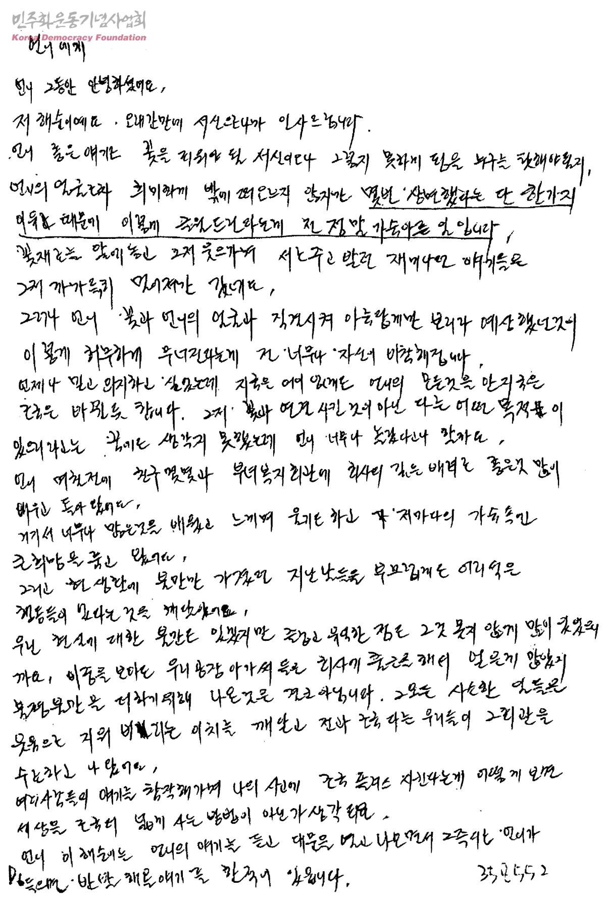 - 구미산업선교회 실무자 고애신 전도사에게 구미를 떠나라는 협박편지를 회사강권으로 쓰다...