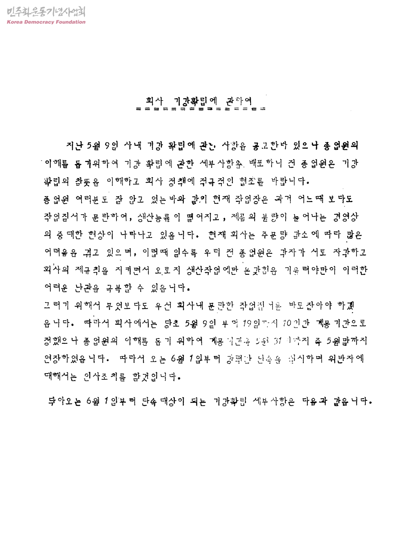회사 기강확립에 관하여