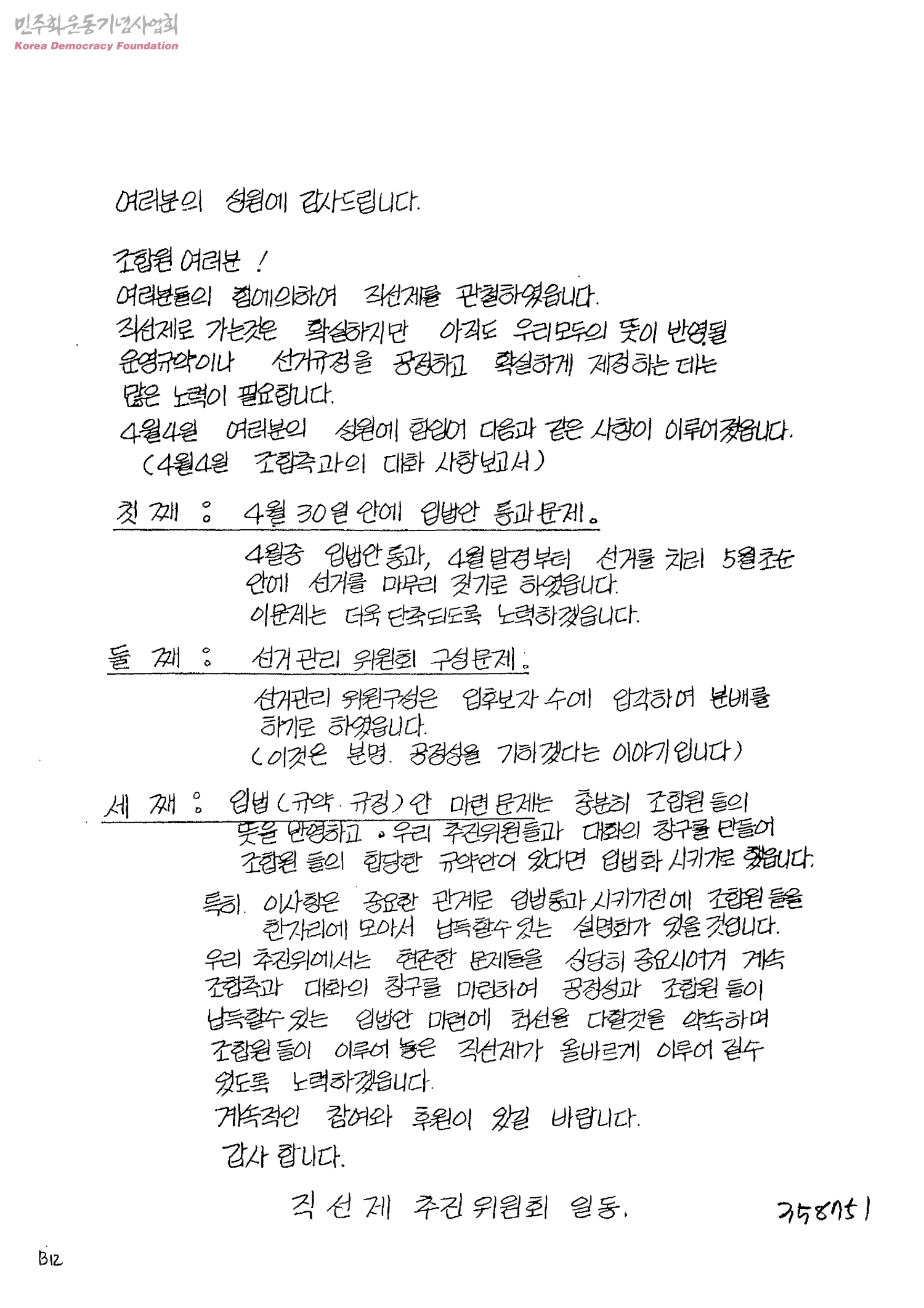 여러분의 성원에 감사드립니다[노조위원장의 직선제 관철에 대한 보고 관련]