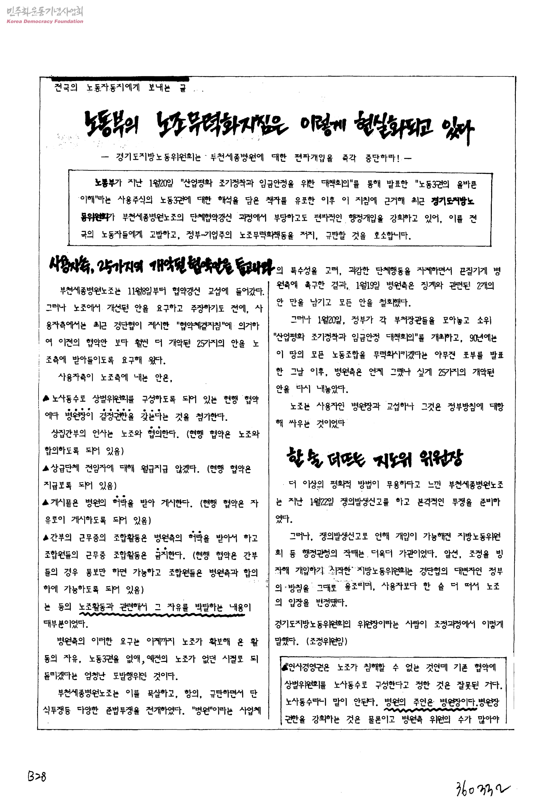 노동부의 노조무력화지침은 이렇게 현실화되고 있다-경기도지방노동위원회 부천세종병원에 대한 편파개입을 즉각 중단하라