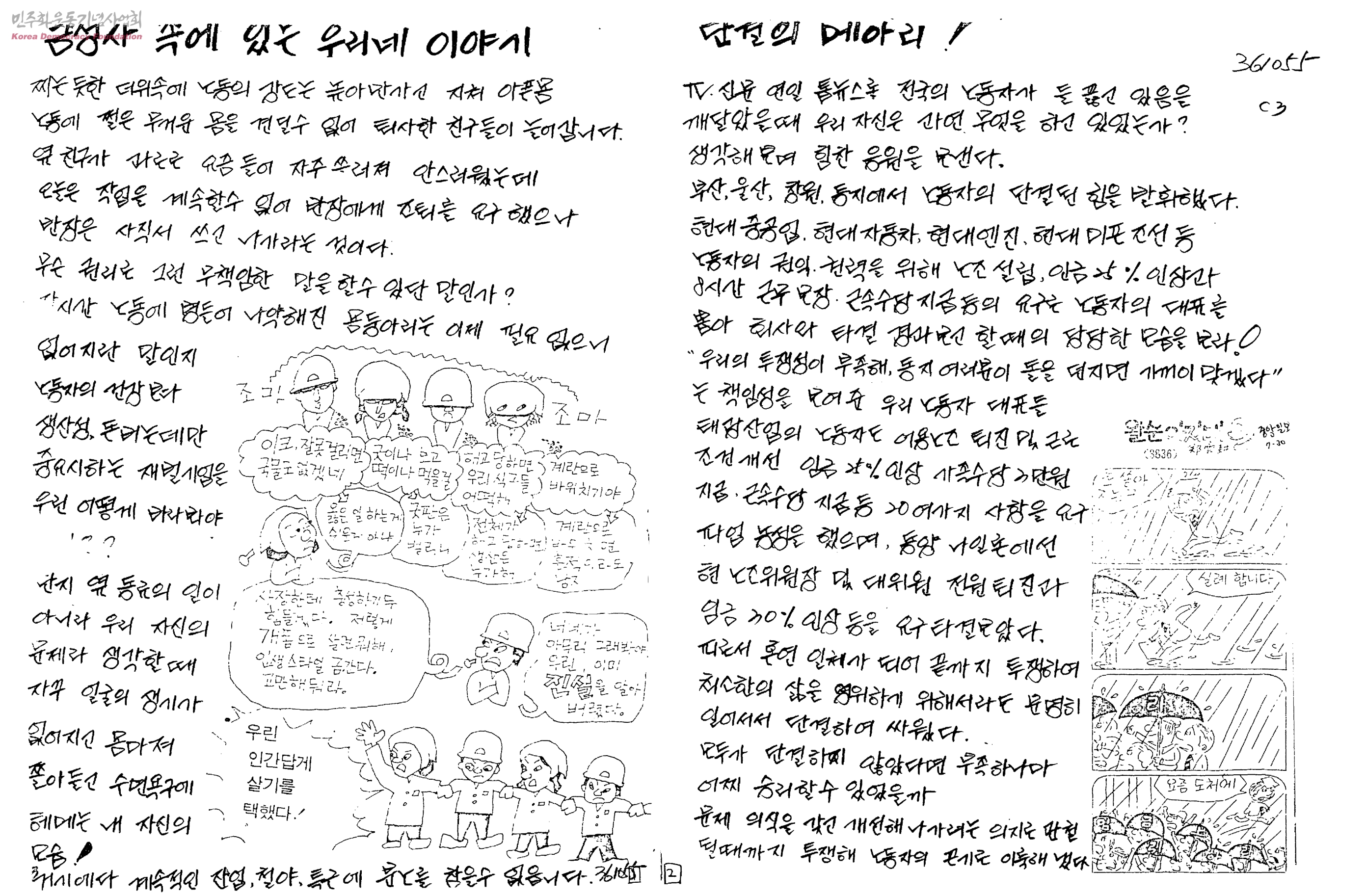 - 노동자들의 단결된 투쟁 소식
