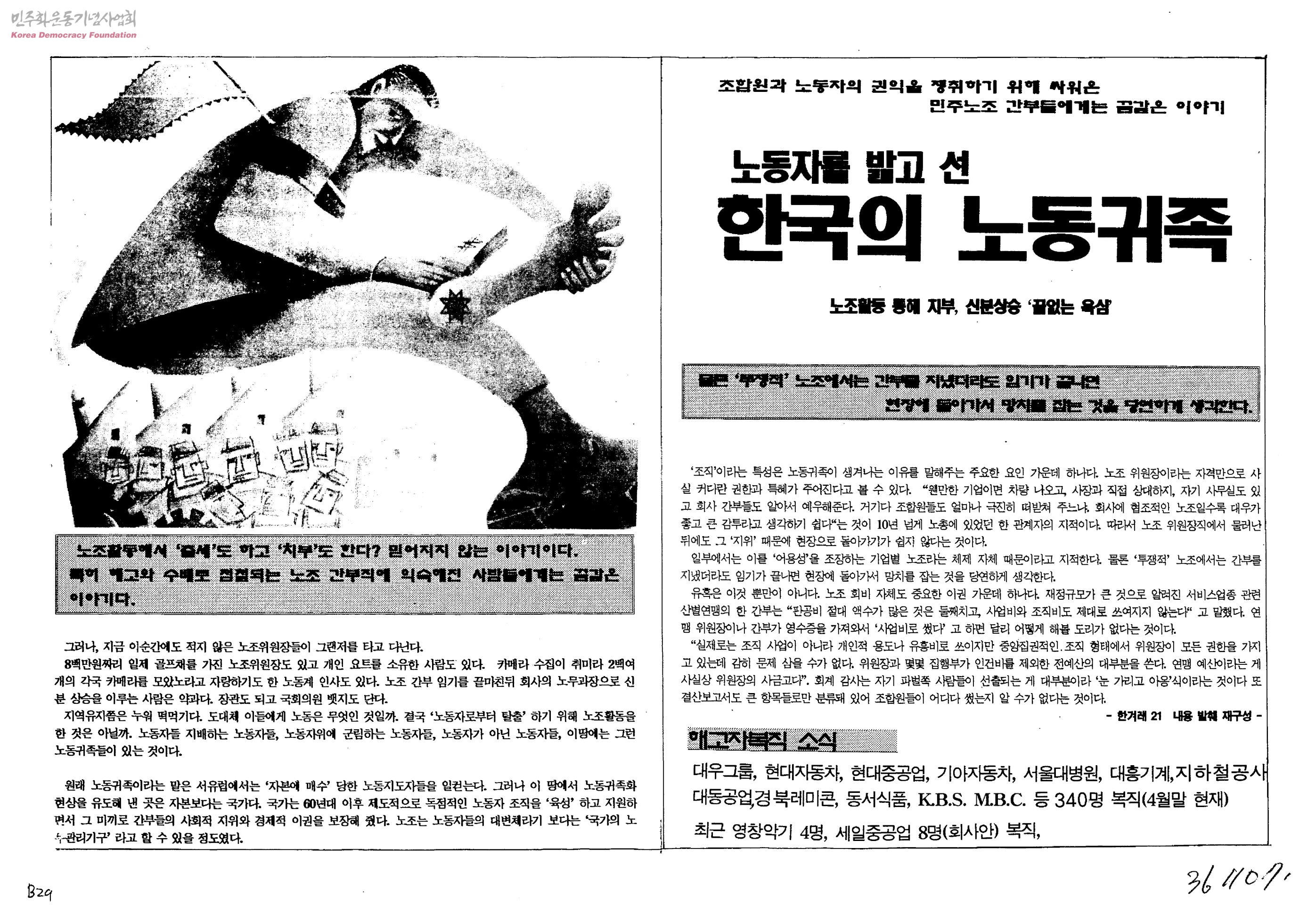 노동자를 밟고 선 한국의 노동귀족[복직을 위한 텐트농성 30일째]