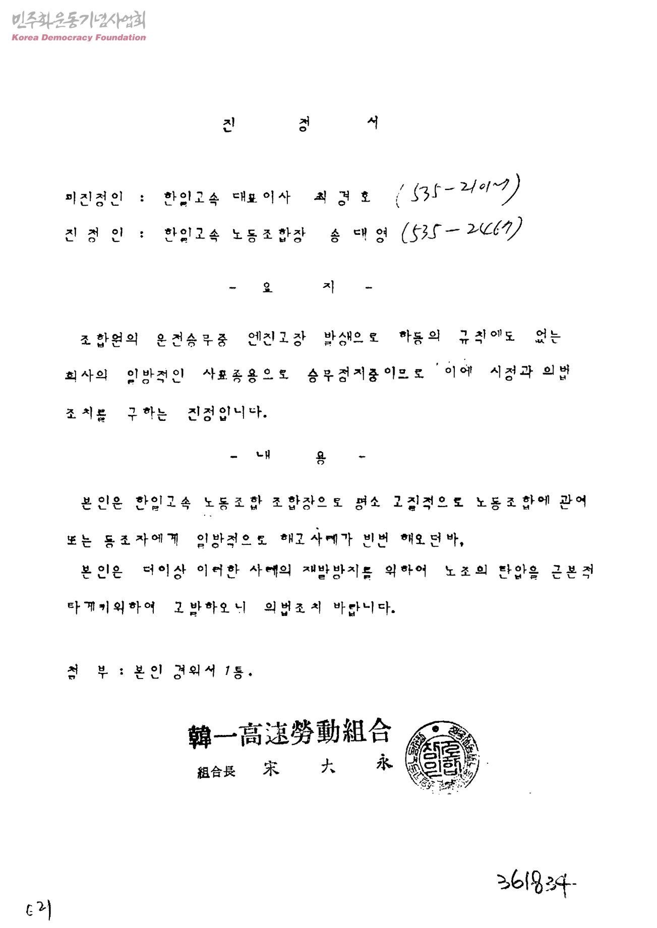 - 생산자 및 기증자가 ‘박용수’인 사진의 사용은 구매신청을 클릭하여 직접 사진 구매 신청을 하실 수 있습니다. 생산자 및 기증자가 ‘경향신문사’인 사진의 사용은 경향신문사 담당자(02-3701-1635)를 통해 구매하실 수 있습니다. 그 외의 생산자 및 기증자는 민주화운동기념사업회 사료관 담당자( hyunchaek@kdemo.or.kr / 02-6440-8961 )에 문의바랍니다.