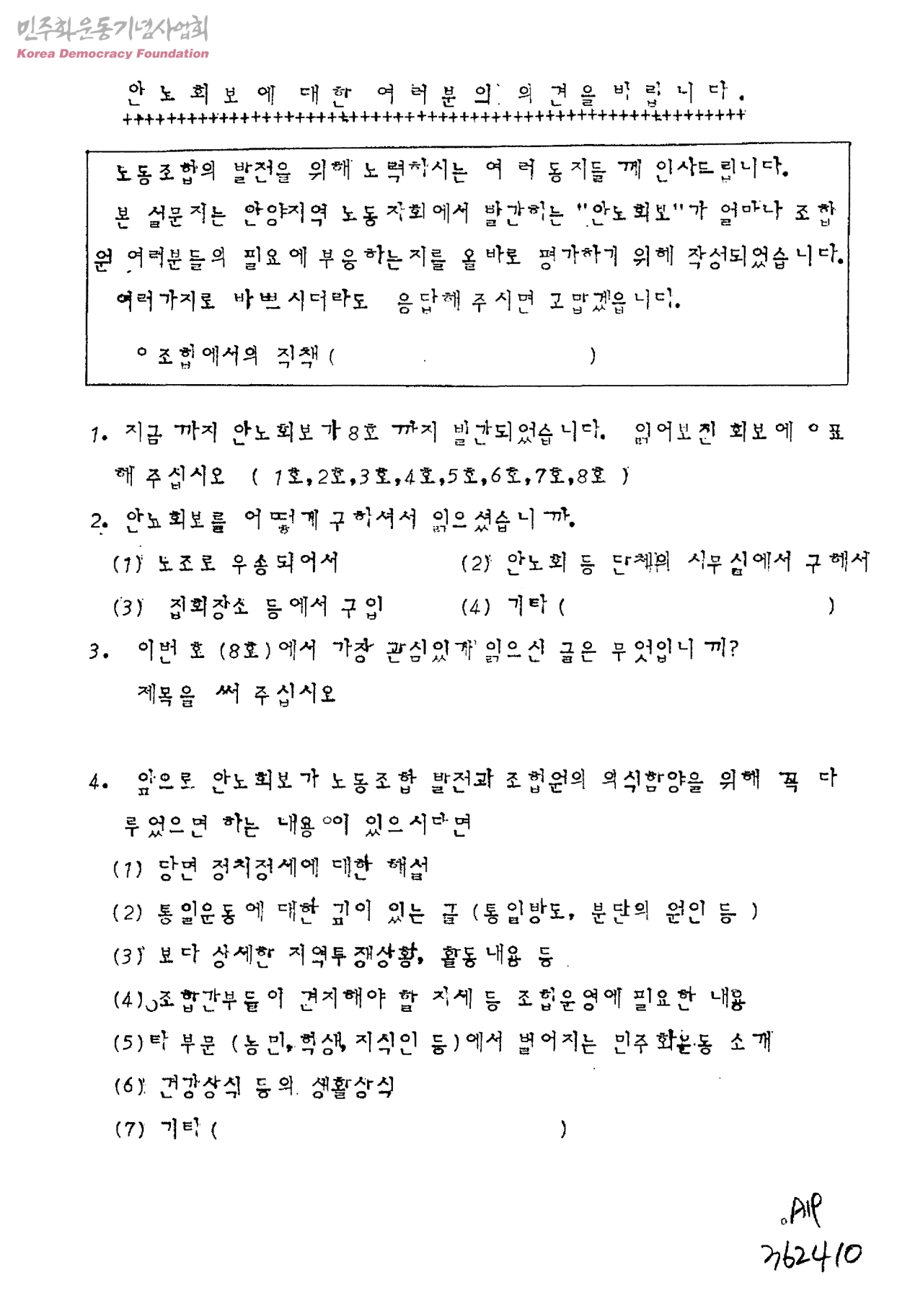 안노회보에 대한 여러분의 의견을 바랍니다[안노회보에 대한 설문]