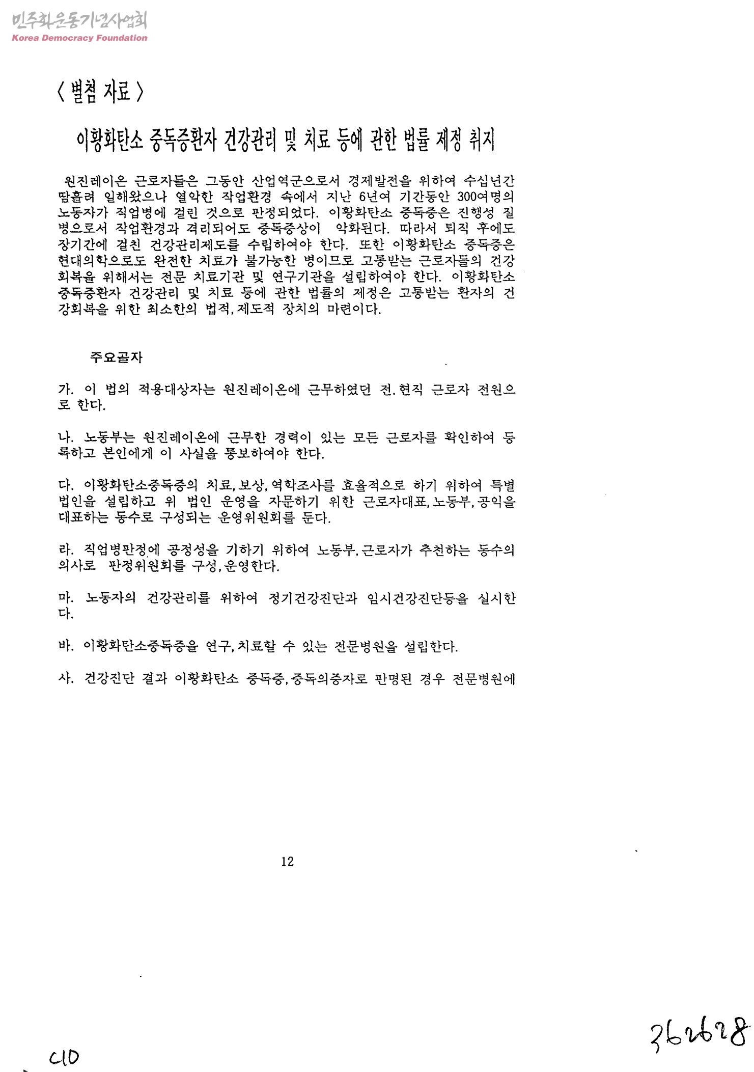이황화탄소 중독중환자 건강관리 및 치료 등에 관한 법률 제정 취지