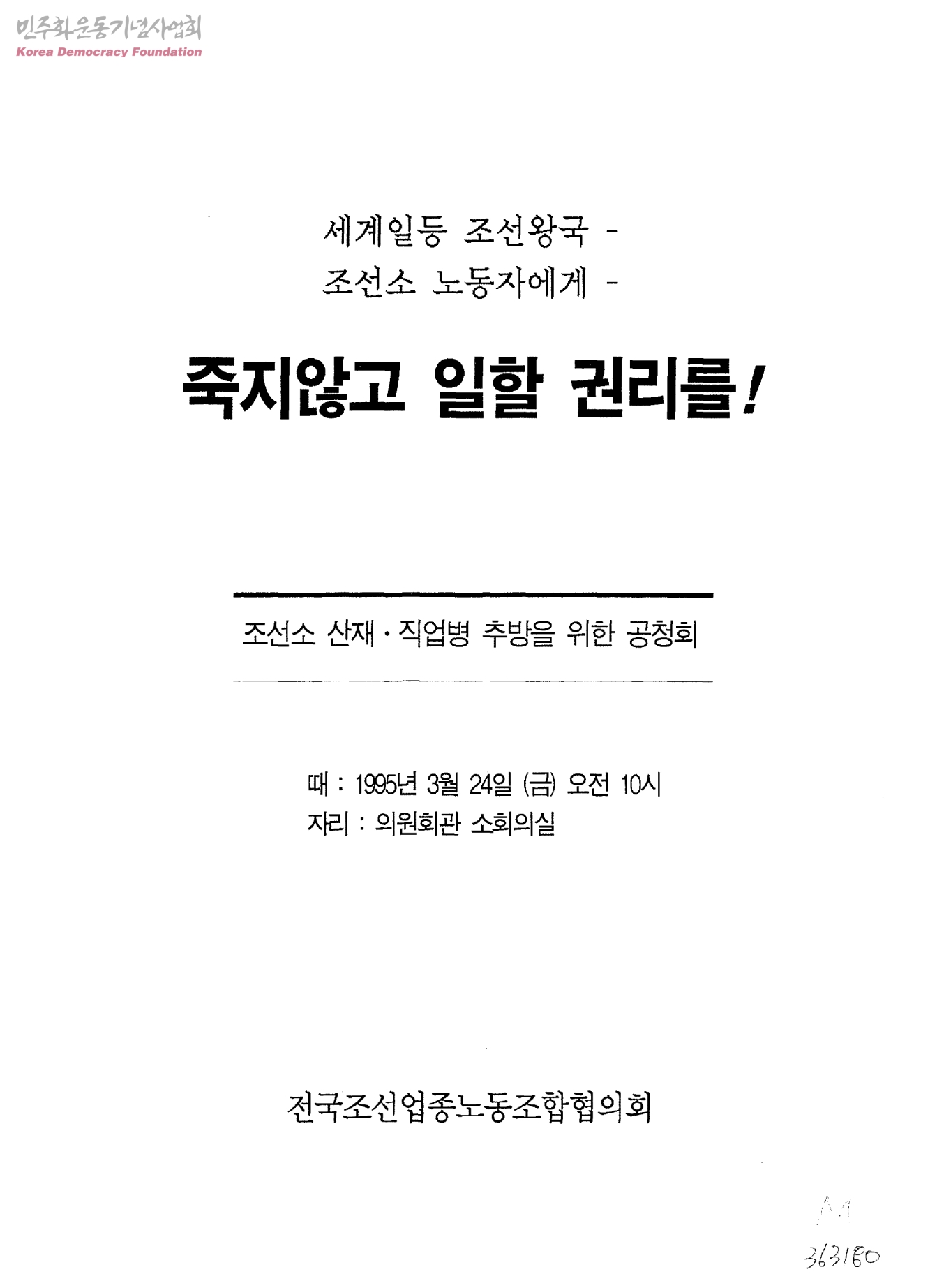 조선소 산재.직업병 추방을 위한 공청회-죽지않고 일할 권리를!