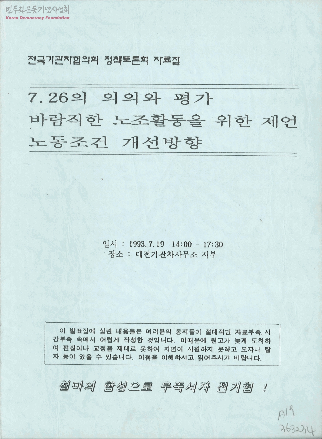 전국기관차협의회 정책토론회 자료집-7.26의 의의와 평가 바람직한 노조활동을 위한 제언 노동조건 개선방향