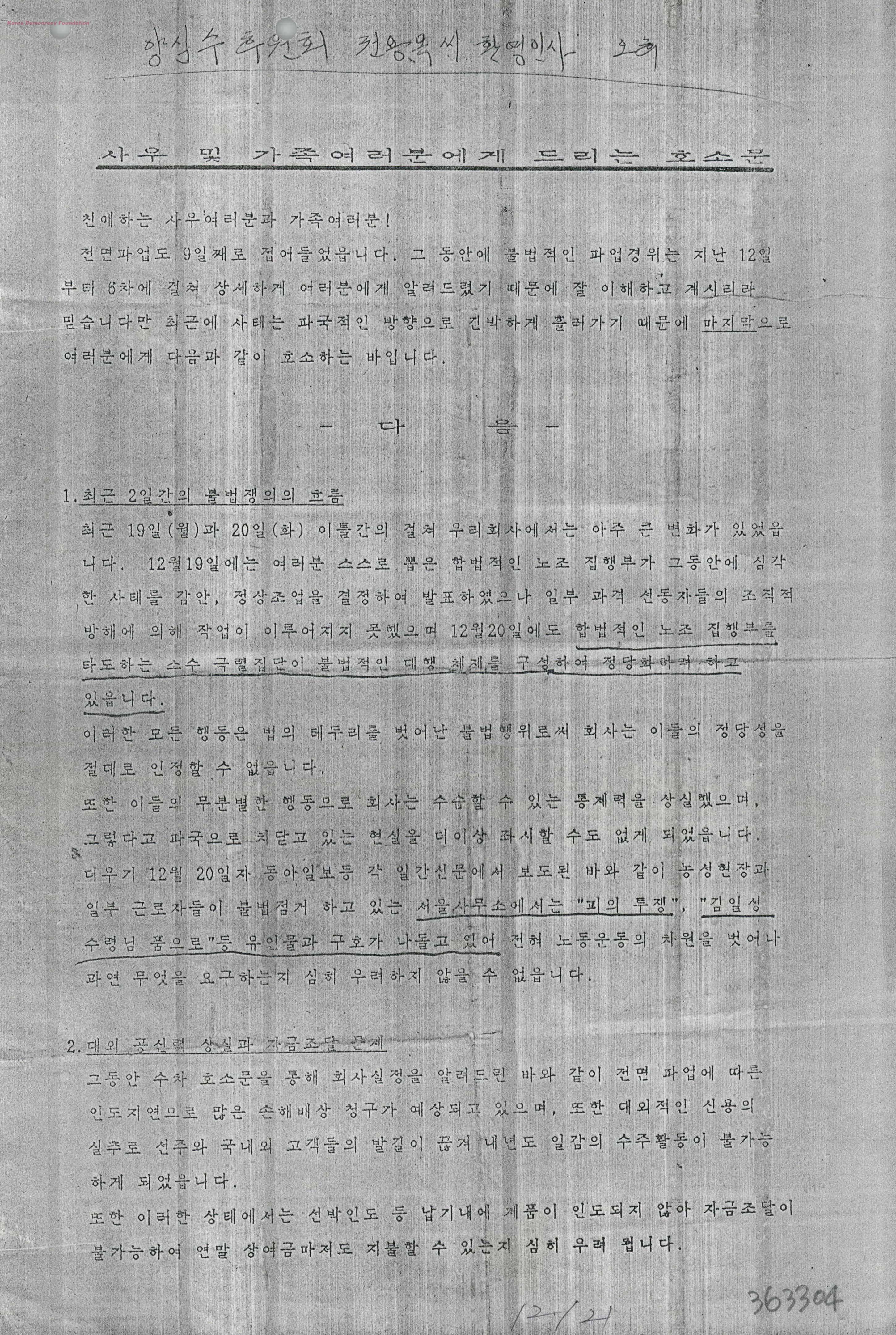 - 1. 최근 2일간의 불법쟁의의 흐름 2. 대외 공신력 상실과 자금조달 문제 3. 동종 국내 조선업계의 현실