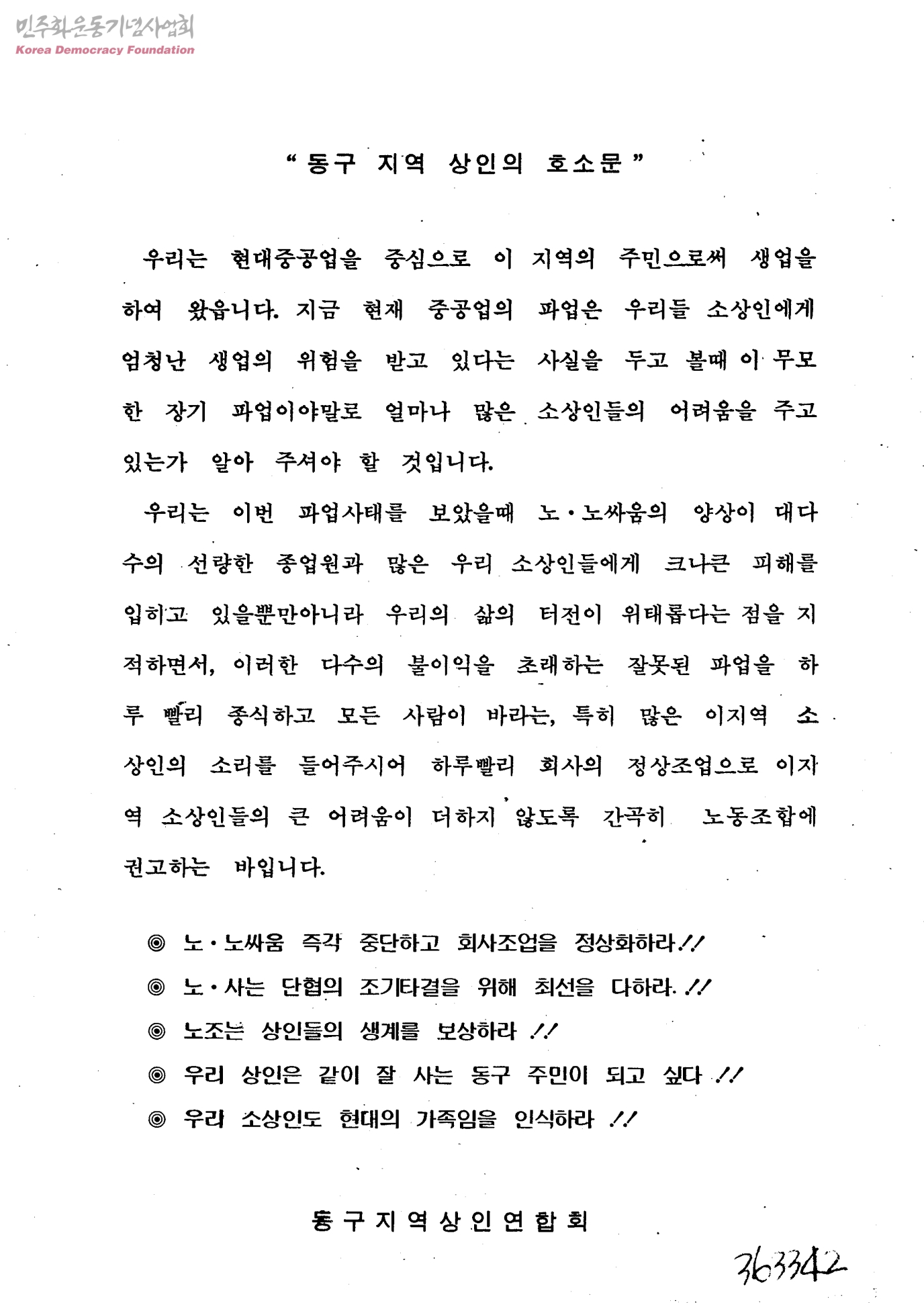동구 지역 상인의 호소문
