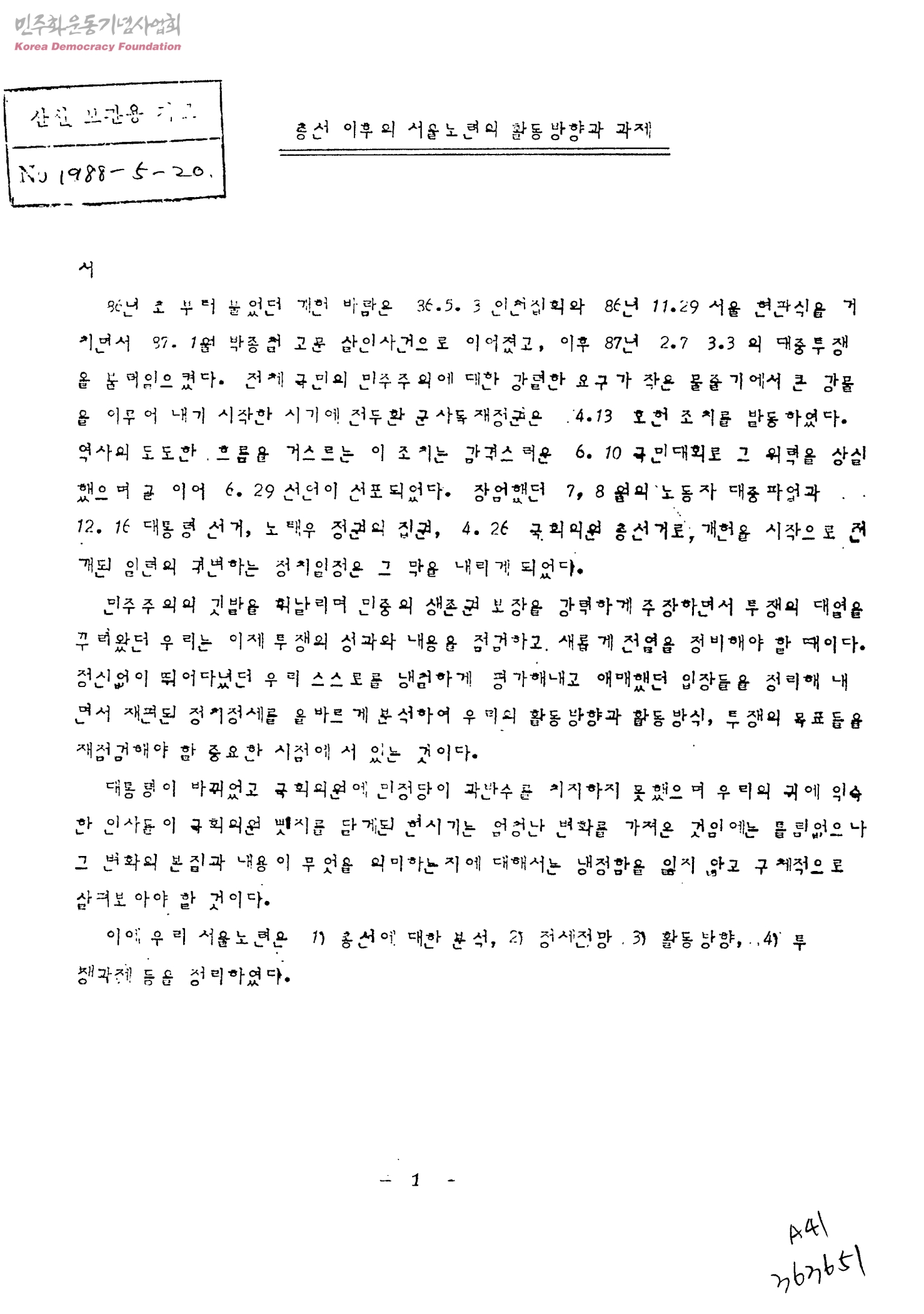총선 이후의 서울노련의 활동방향과 과제