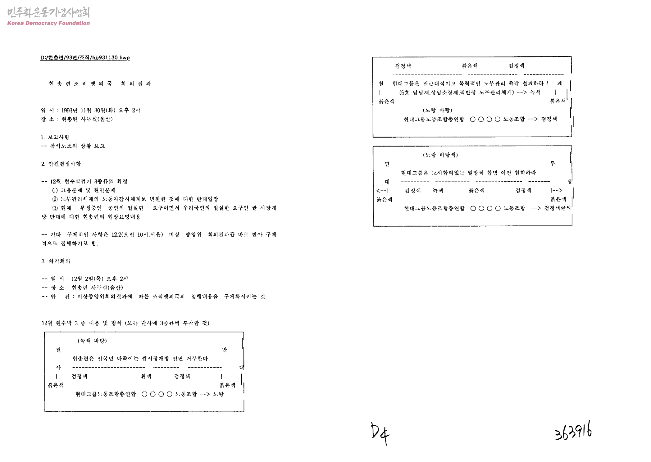 - 현수막걸기 3종류 1. 쌀시장 개방 거부 2. 전근대적이고 폭력적인 노무관리 즉각 철폐 3. 일방적 합병 이전 철회