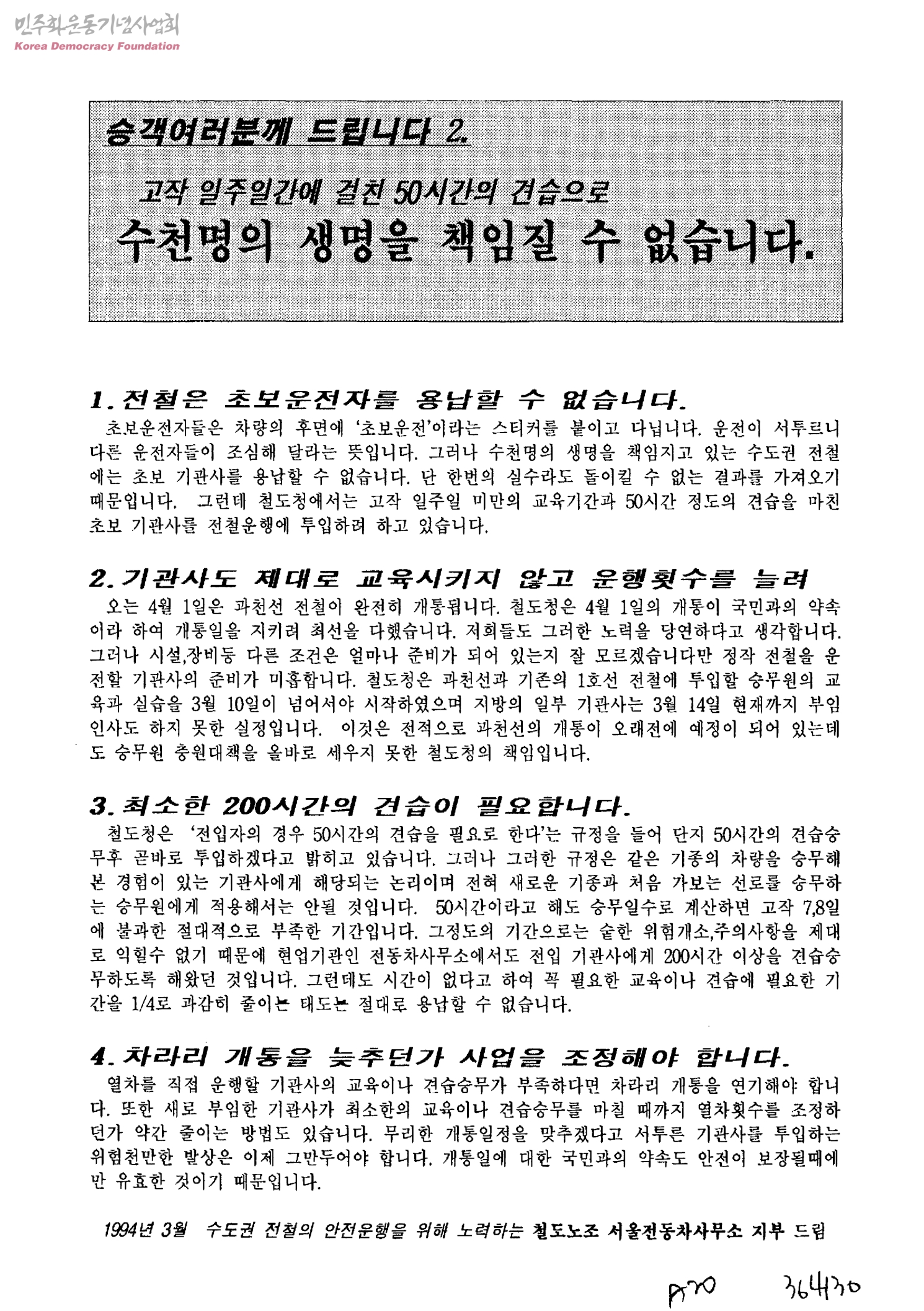 - 수도권전철의안전운행을위해노력하는철도노조서울전동차사무소지부