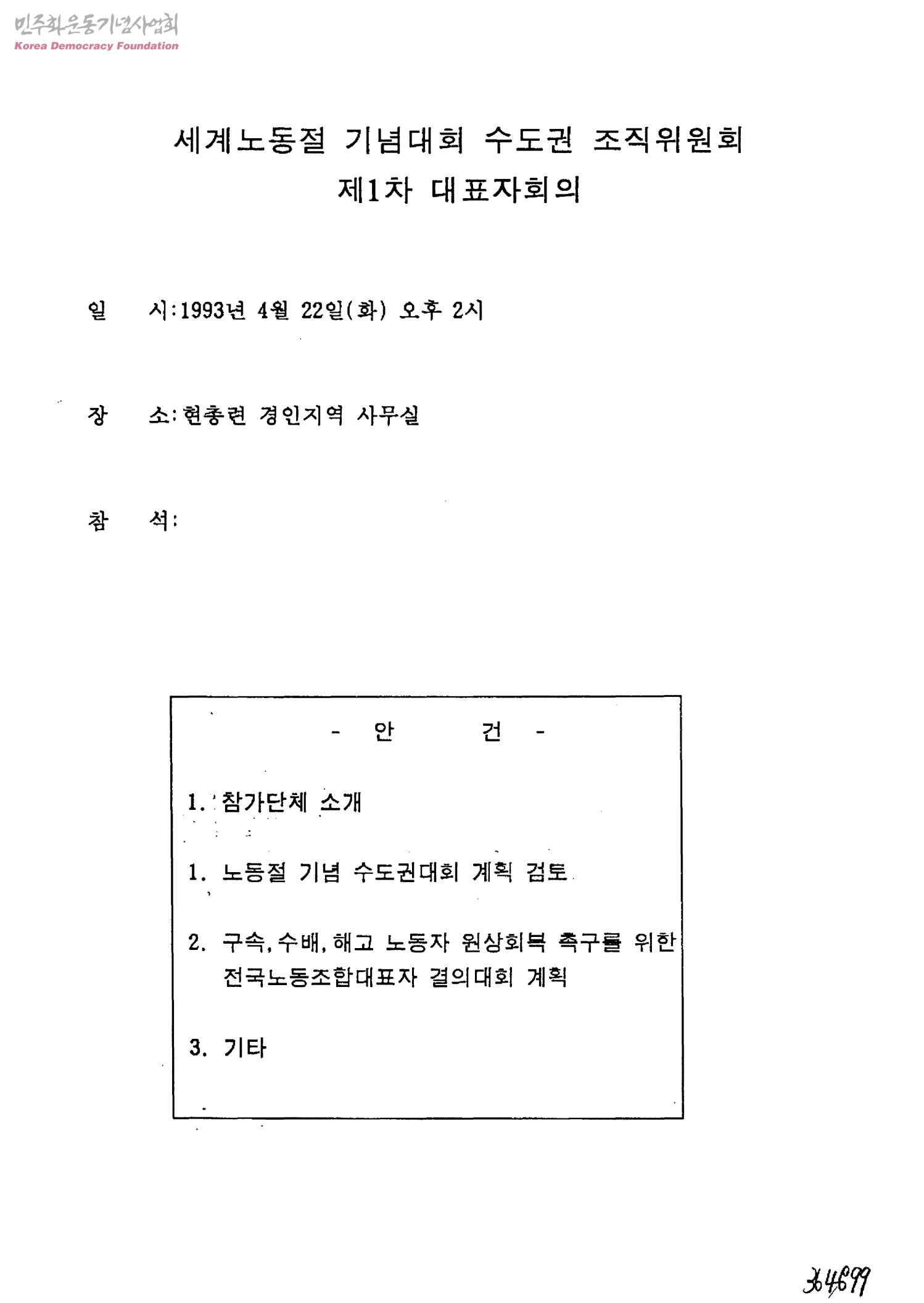 세계노동절 기념대회 수도권 조직위원회 제1차 대표자회의
