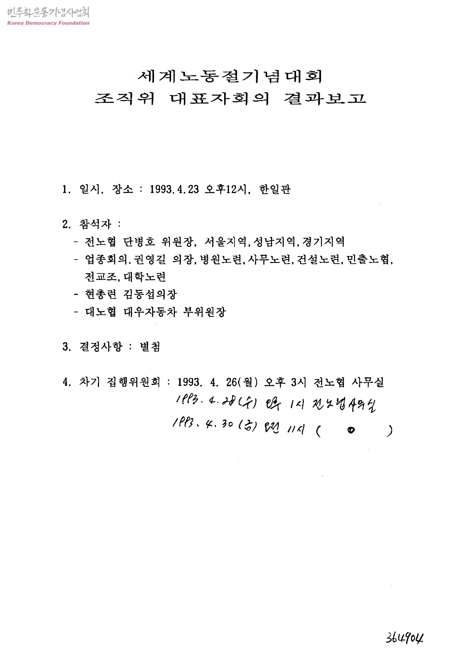 세계노동절기념대회 조직위 대표자회의 결과보고
