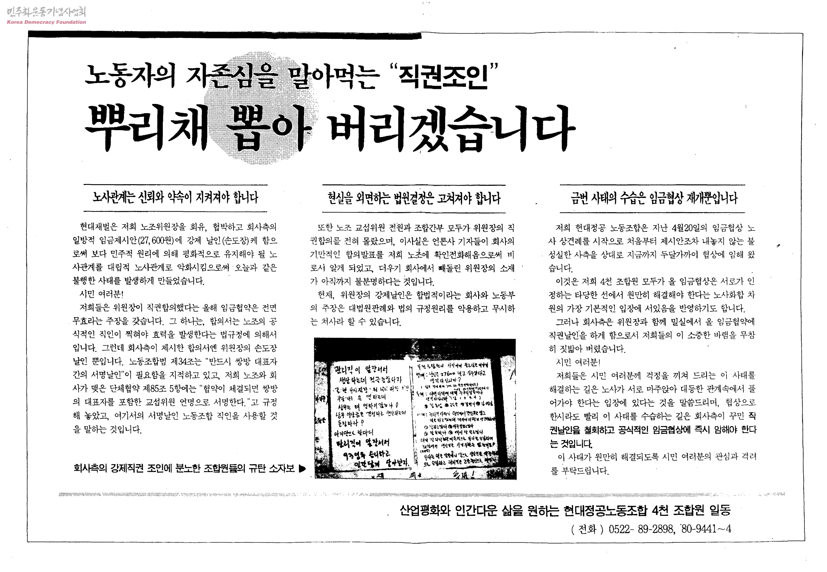 ['93 선전물 관련]성명서-폭력은 그 무엇도 해결할 수 없다[현대정공조합의 성명]