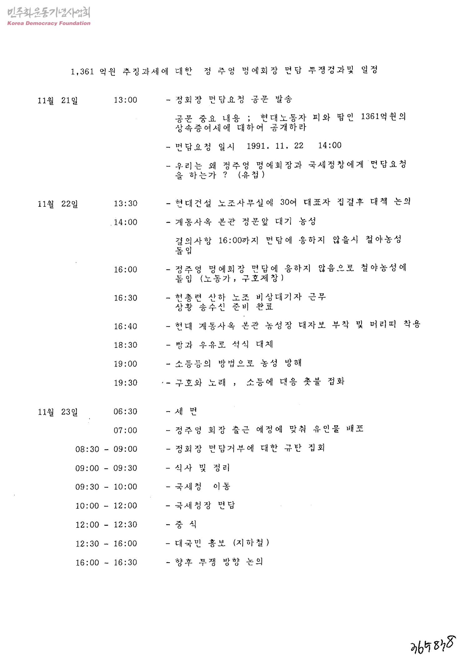 1,361억원 추징과세에 대한 정주영 명예회장 면담 투쟁경과 및 일정