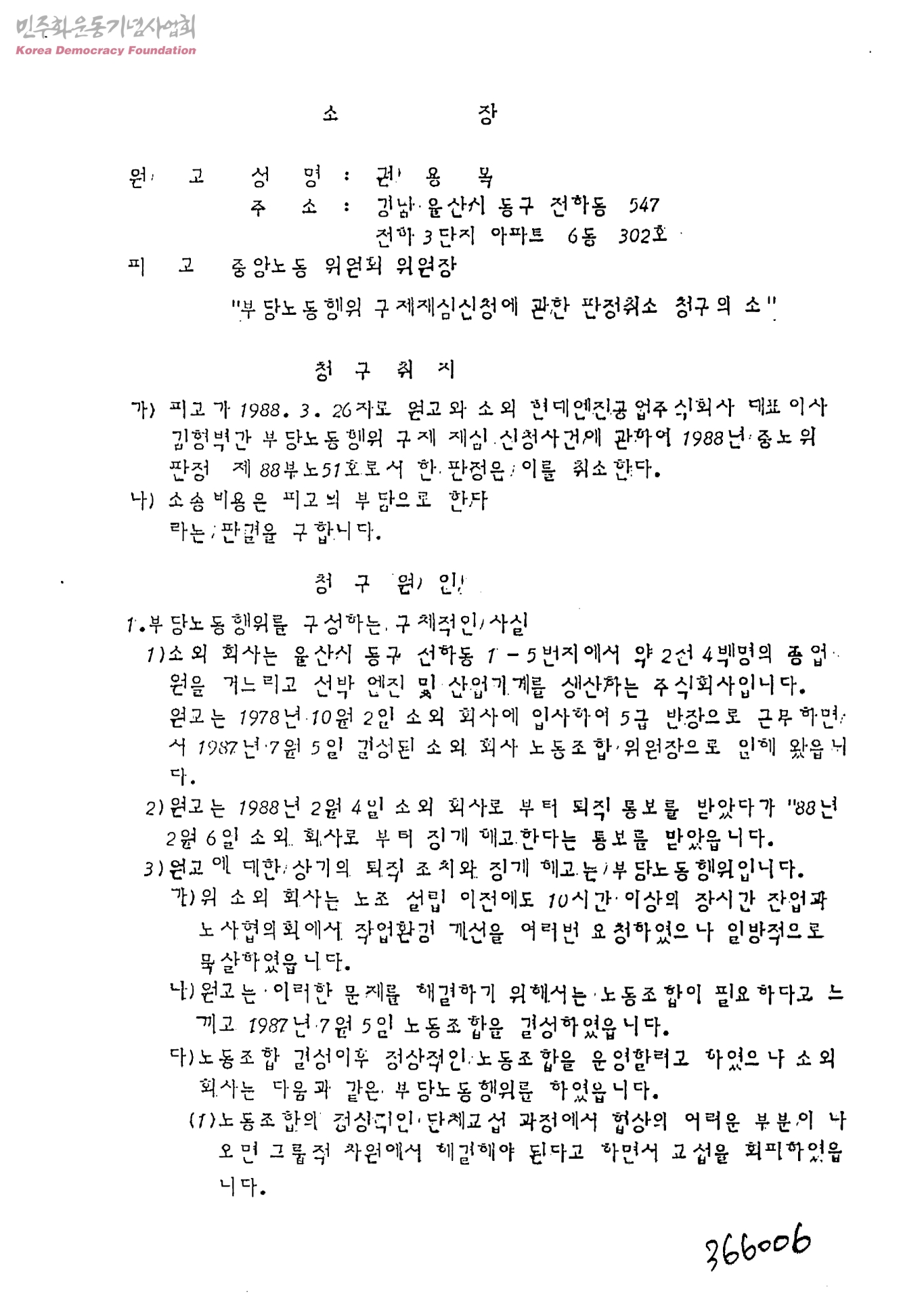 - 원고:권용목, 피고:중앙노동 위원회 위원장