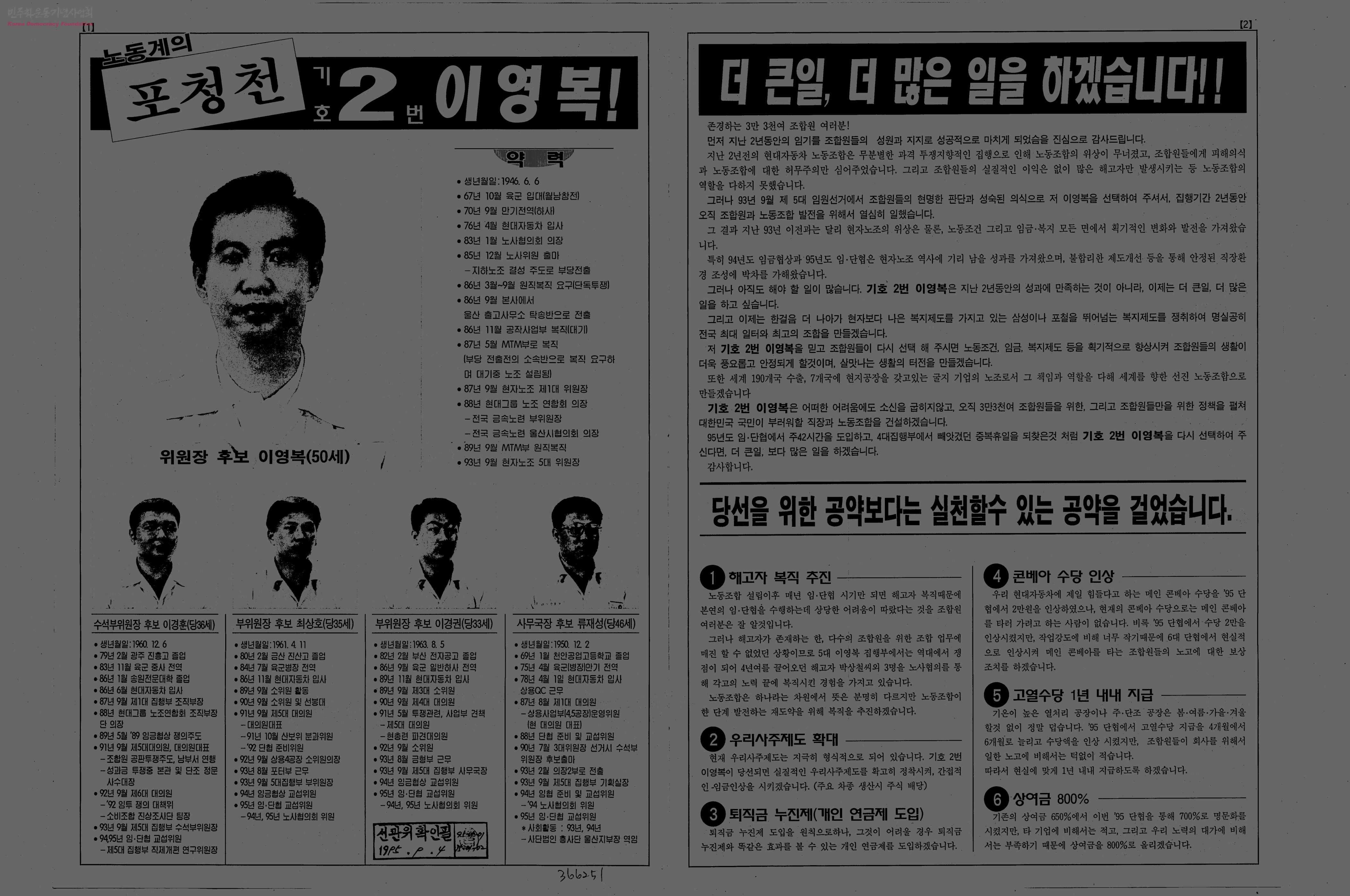 노동계의 포청천 기호2번 이영복!