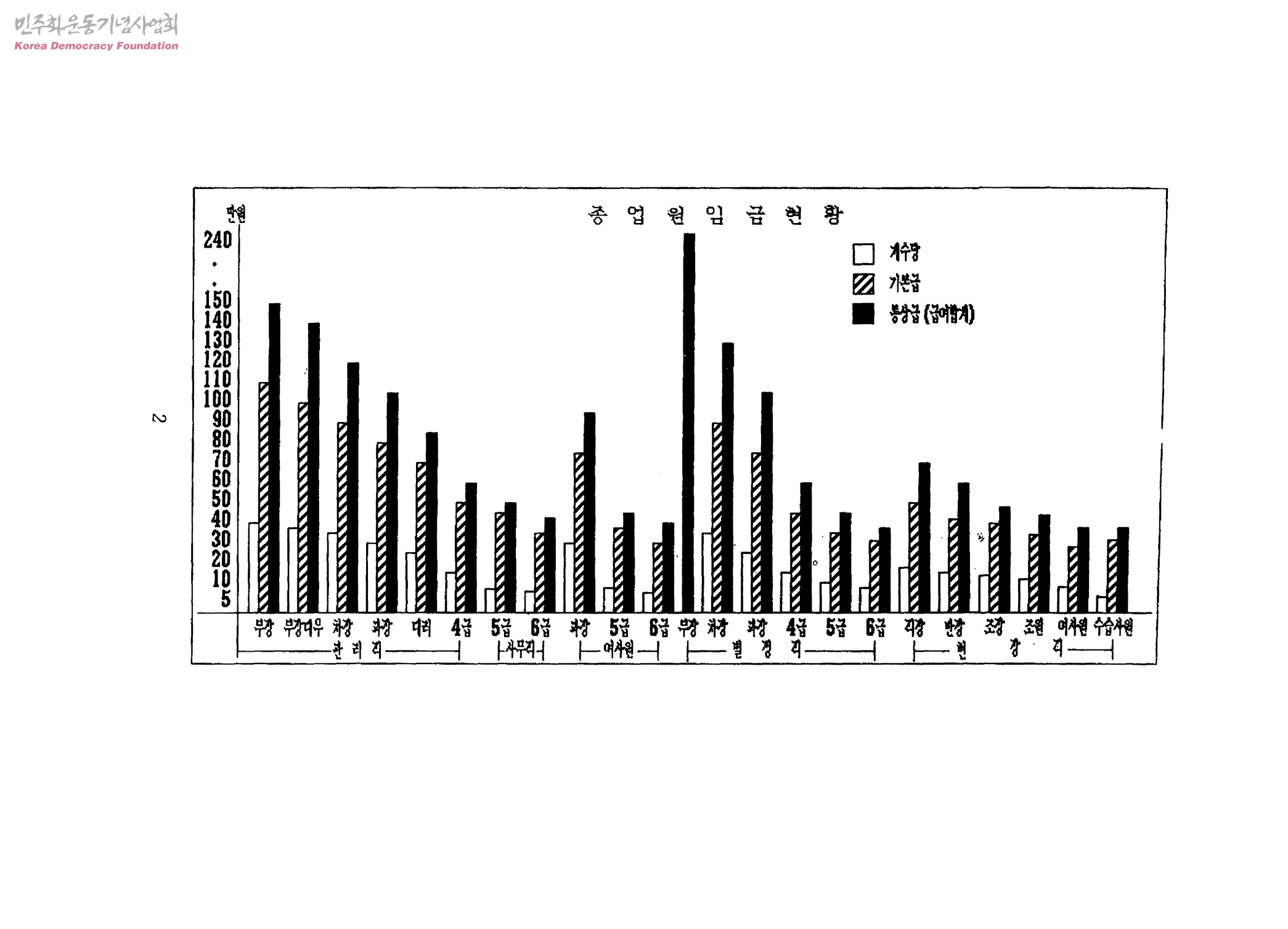 90년 관리직 현장직 임금인상 비교표
