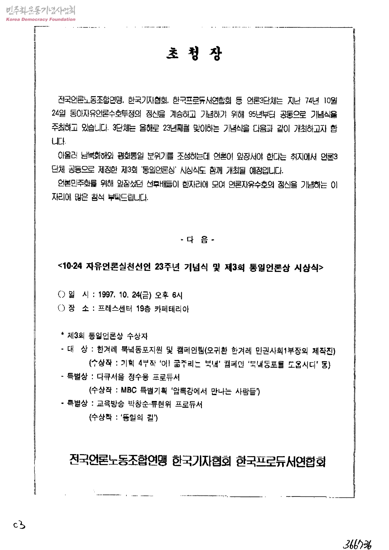 초청장-10.24 자유언론실천선언 23주년 기념식 및 제3회 통일언론상 시상식