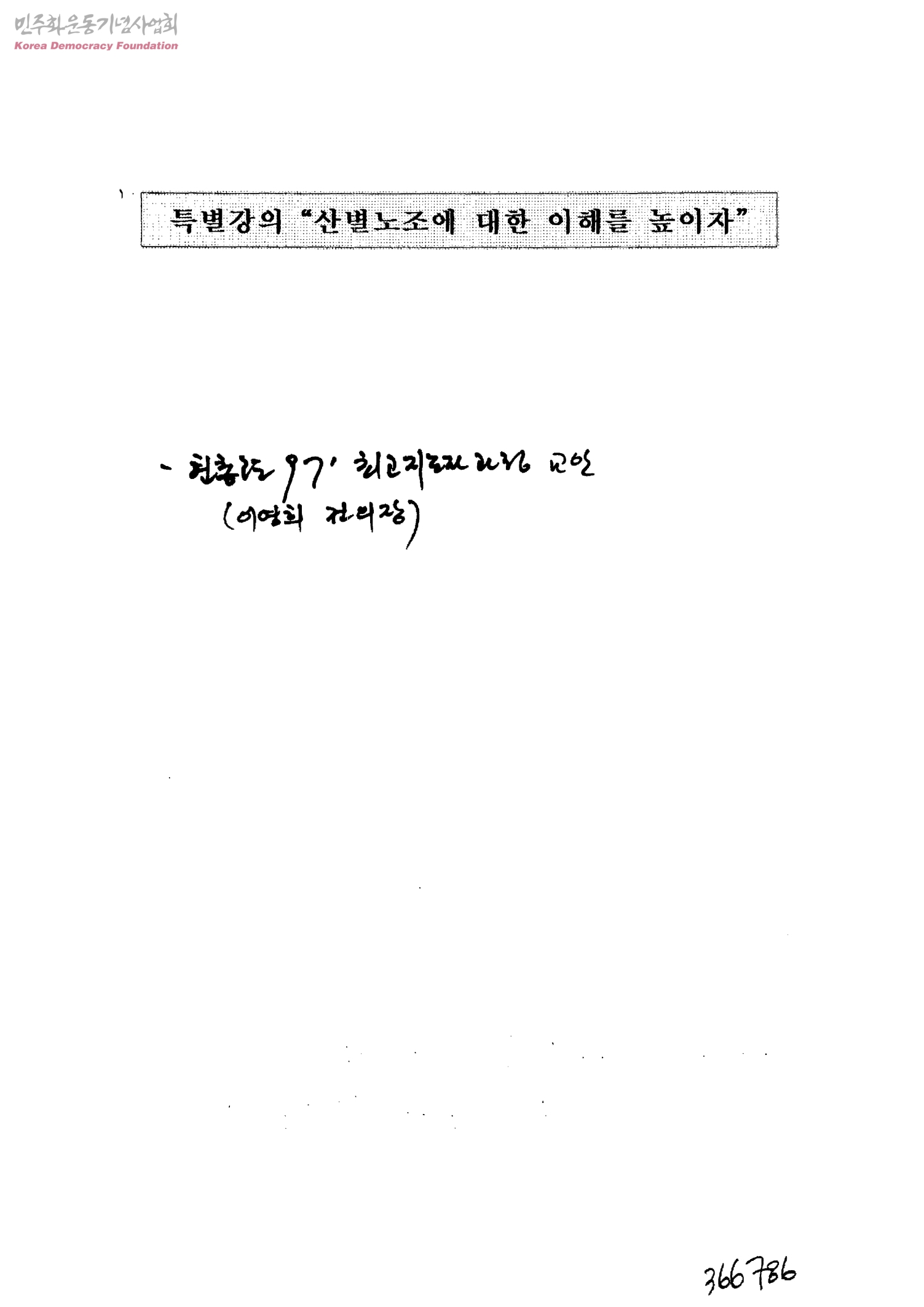 - 1)들어가는말 2)산별노조건설논의에서 나타나고 있는 몇가지 편향 3)산별노조 건설의 구체적인 모습은 기업별 노조의 통폐합으로 진행된다 4)금속 3주체의 통합은 단일 노조건설에 절대적 조건은 아니나 상당히 유리한 것이다. 5)맺음말
