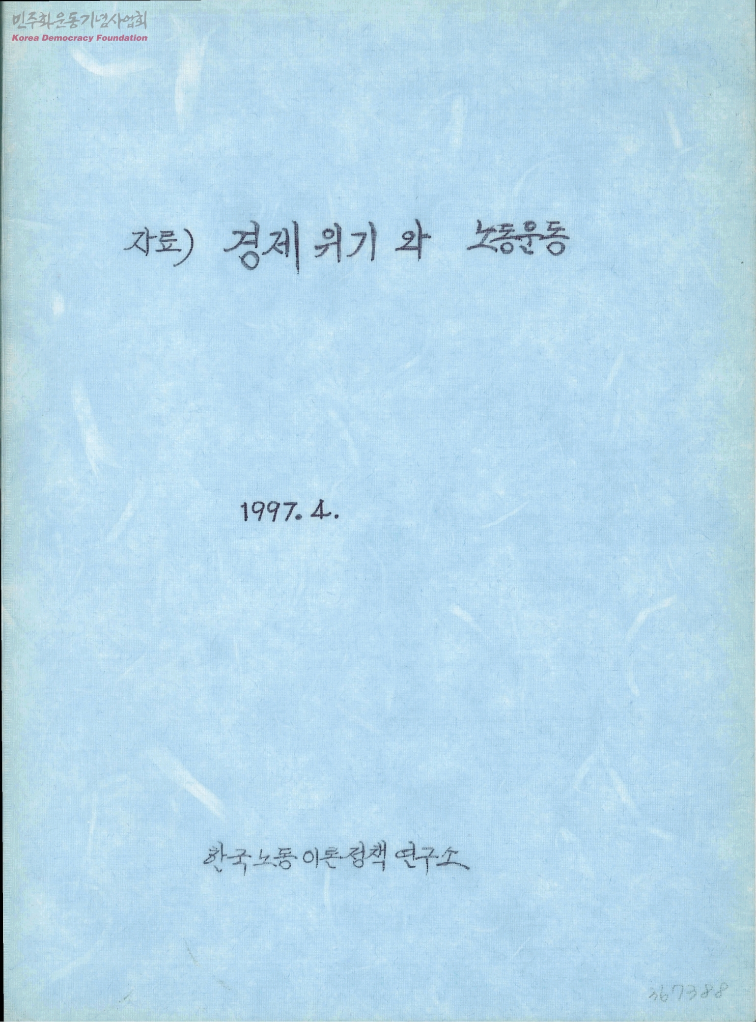 - 경제위기,노동자는 어떻게 볼 것인가 '경제위기'설과 '경제위기- 노동자 책임'론 한국경제의 위기와 위기론 최근 '경제위기론'을 어떻게 이용할 것인가 1990년대 한국자본주의의 구조변화 한국경제, 1997년 한국경제의 현주소 한국경제 왜 위긴인가 - 경험적 진단 시론 경제위기 관련 신문기사 검색자료