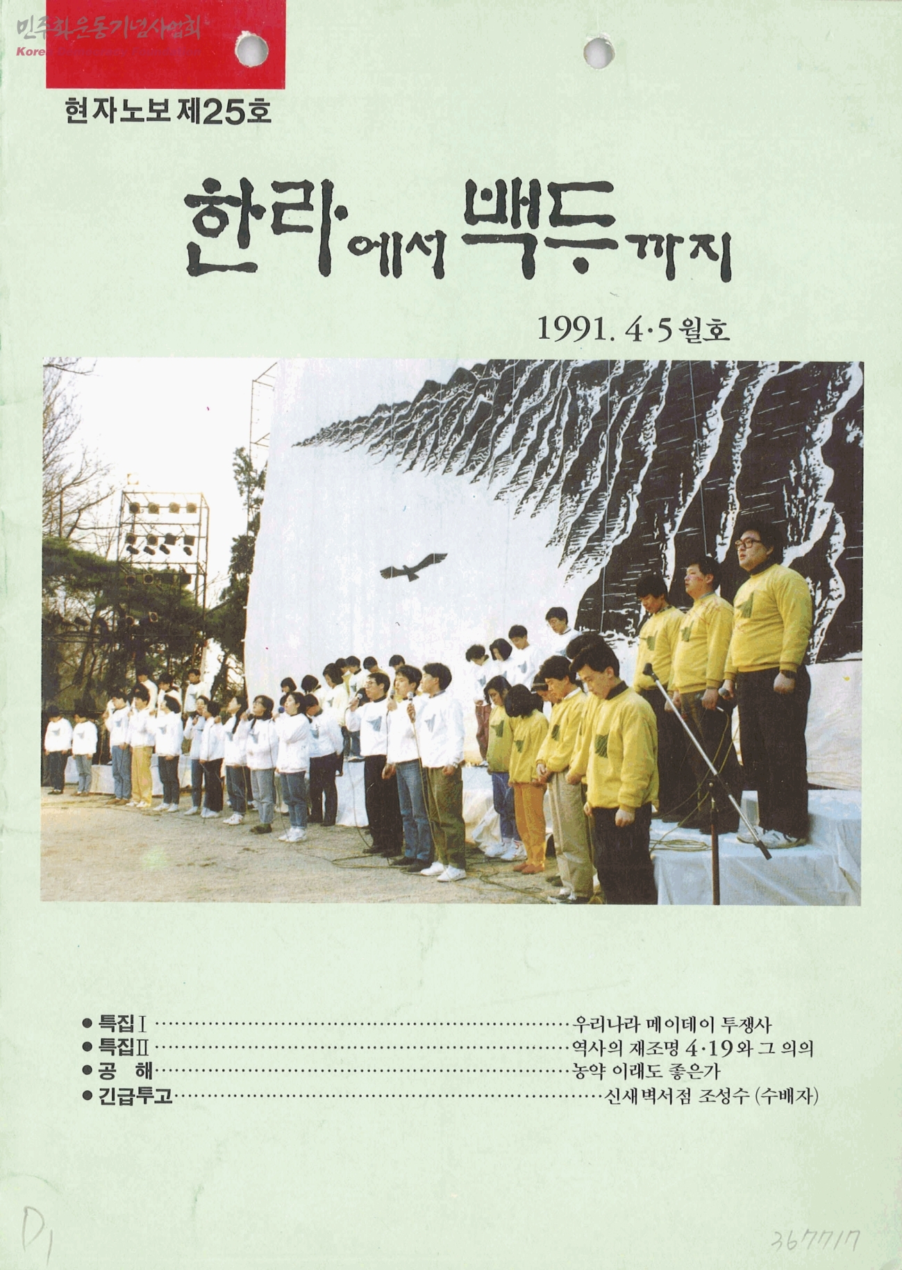 - 1)초대시 2)이렇게 모았습니다 3)한백초대석 4)특집 5)기획연재만화 6)양심의 소리 7)한백만평 8)환경 9)조합원문예 10)환경 11)거꾸로 읽는 세상이야기 12)회계현황 13)역사의 재조명 14)인권 15)커피아가씨에게 당당한 노동자로 16)알고계십니까 17)긴급투고 18)언론 19)조삼모사의 경제학 20)임을 위한 행진곡 21)한백퀴즈 22)편집후기