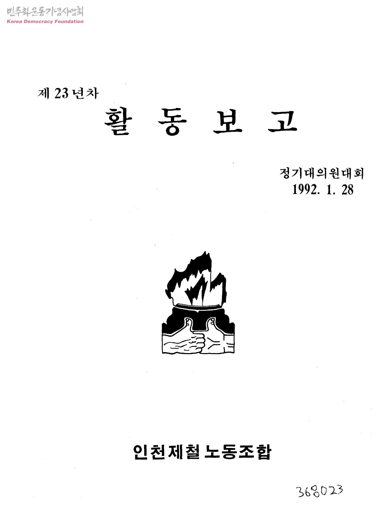 - 1)권두사 2)한국노총 및 전국 금속노련 휘장 설명 3)선언 및 강령 4)노총가 5)금속노련가 6)노동조합가 7)제23년차 정기대의원 대회회순 8)노동조합 현황 9)각 부서 활동보고 10)사무국 활동보고 11)문서수발(발송,접수) 12)출장현황 13)주요 공고문 14)각종 회의 15)기획실 활동보고 16)홍보실 활동보고 17)조직실 활동보고 18)대외활동보고 19)현총련 활동보고 20)인천지역 대공자 연대모임 활도보고 21)'91년 세입세출결산 및 92년 세입세출예산(안) 22)'92년 노동조합 주요사업 계획서