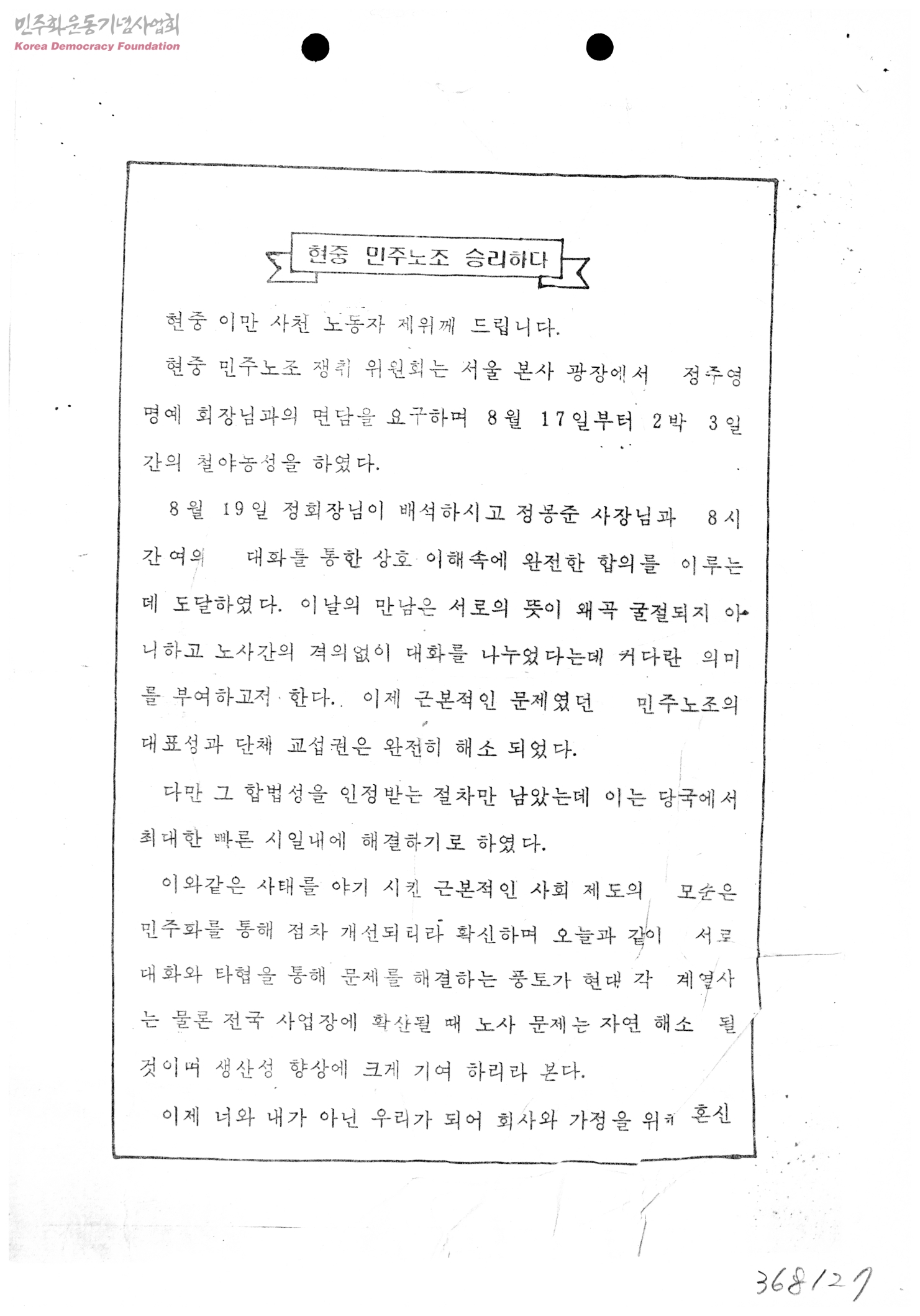 현중 민주노조 승리하다