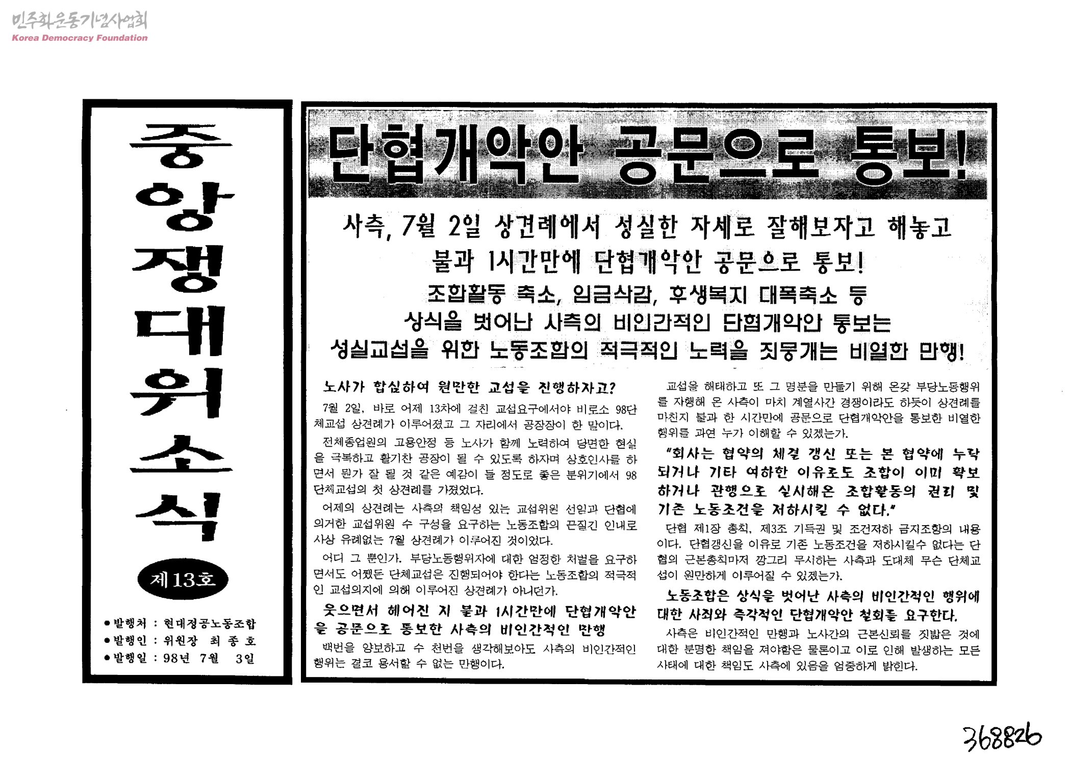 - 1)단협개악안 공문으로 통보 2)84개반 투쟁기금 결의 찬성 등