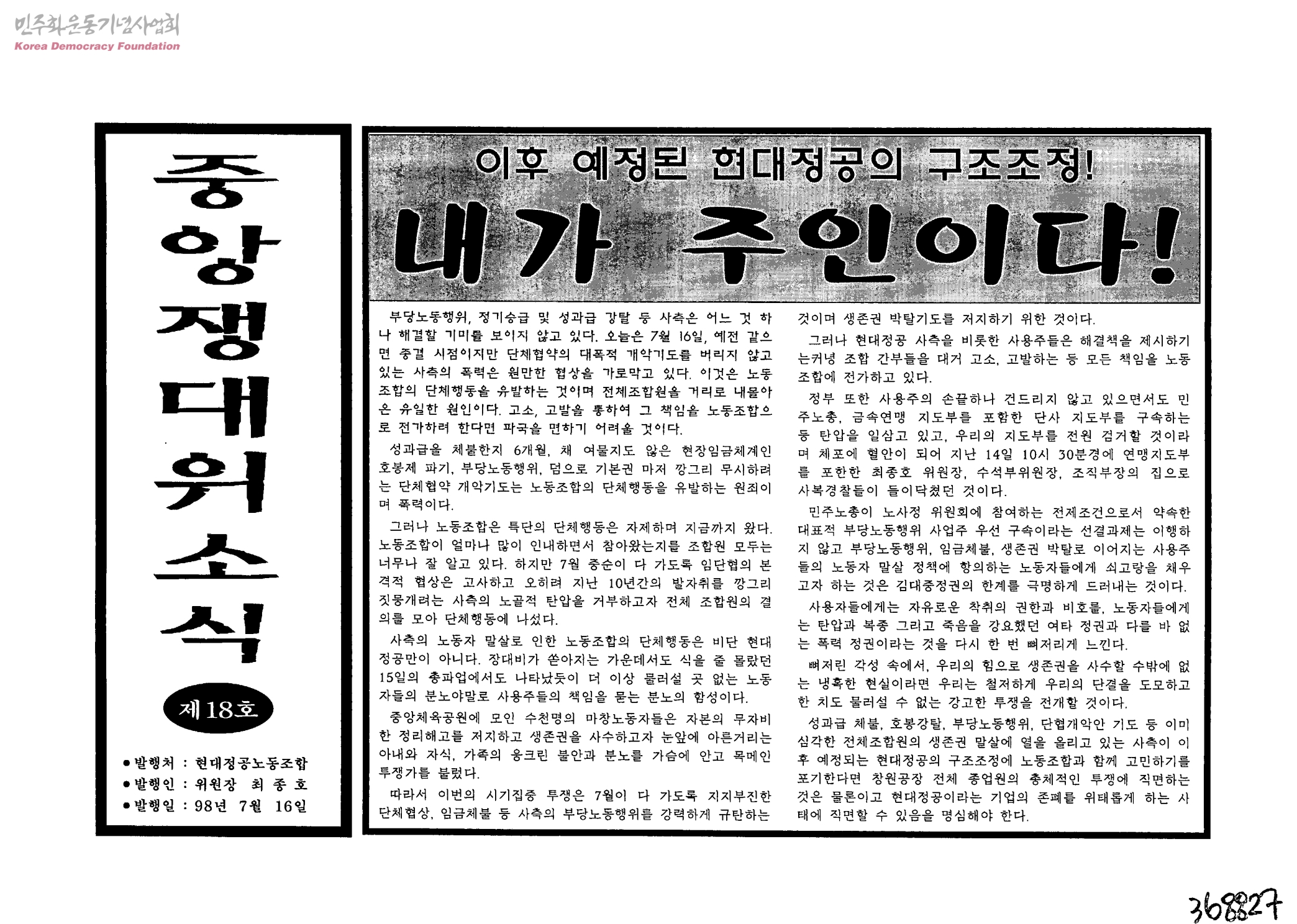- 1)이후 예정된 현대정공의 구조조정-내가 주인이다 2)고용관련 협의의 목적은 고용안정이다.
