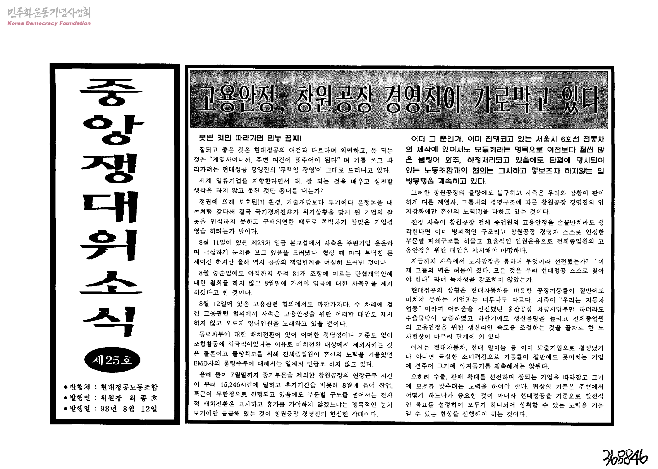 - 1)고용안정, 창원공장 경영진이 가로 막고 있다 2)고통분담, 생존권을 박탈하려는 사기극 등