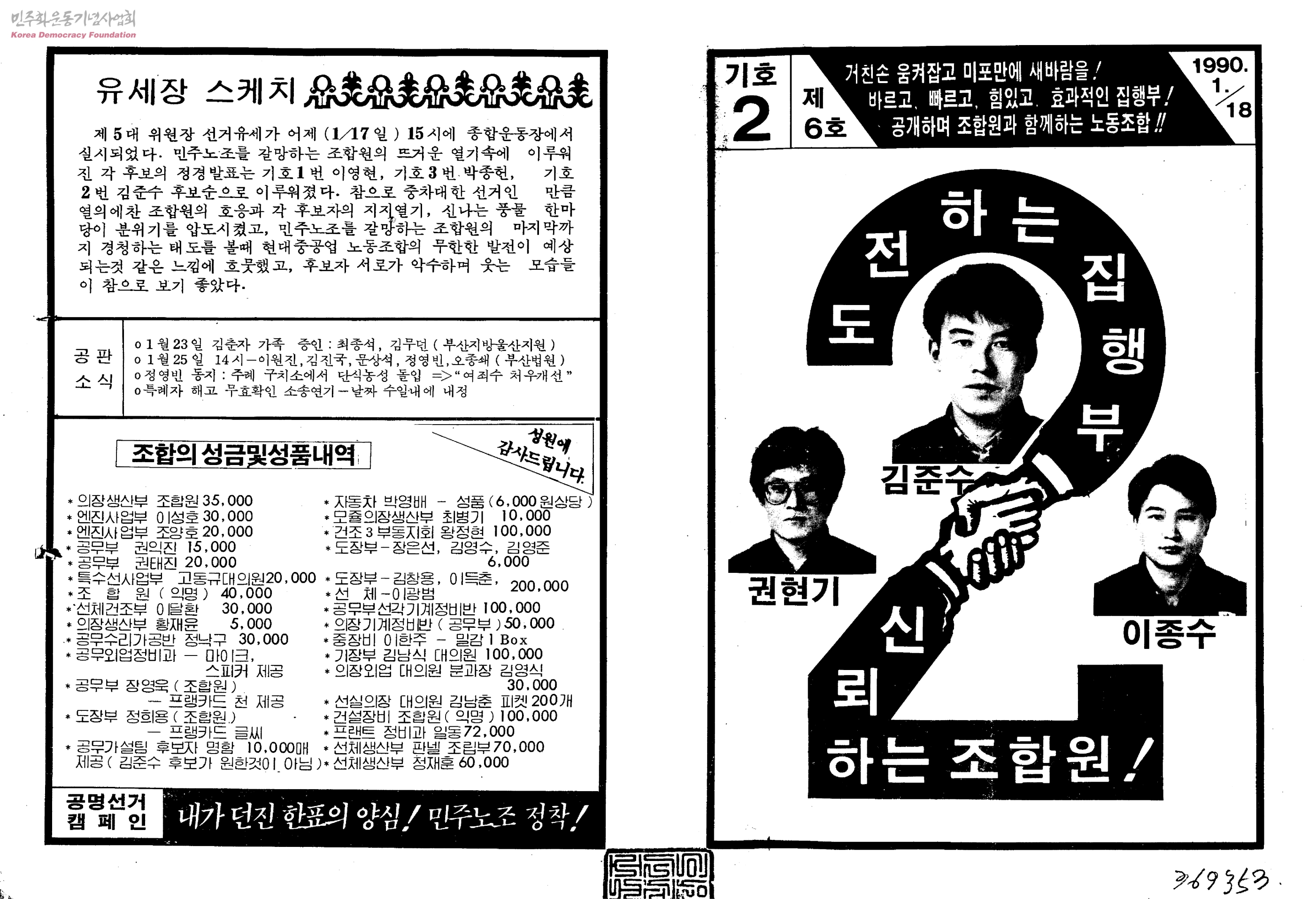 기호2-도전하는 집행부 신뢰하는 조합원 제6호[권현기,김준수,이종수후보선거홍보유인물]