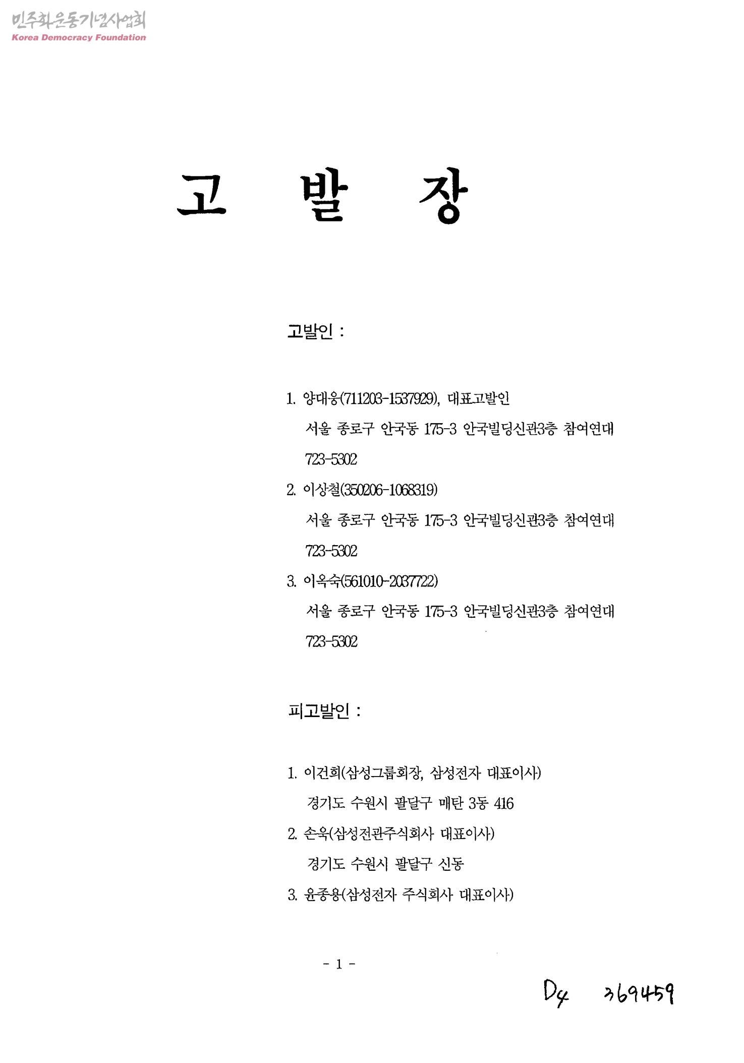 - 참여연대 양대웅, 이상철, 이옥숙