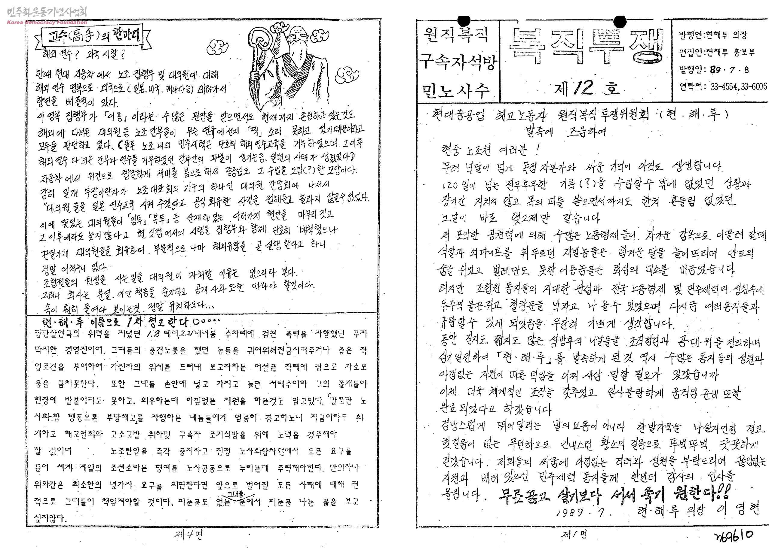 - 현대중공업 해고노동자 원직복직 투쟁위원회(현.해.투) 발족에 즈음하여 현.해.투 조직표 종합목재를 바라보면서... 현.해.투 이름으로 1차 경고한다(해고철회와 고소고발 취하 및 구속자 조기석방 등)