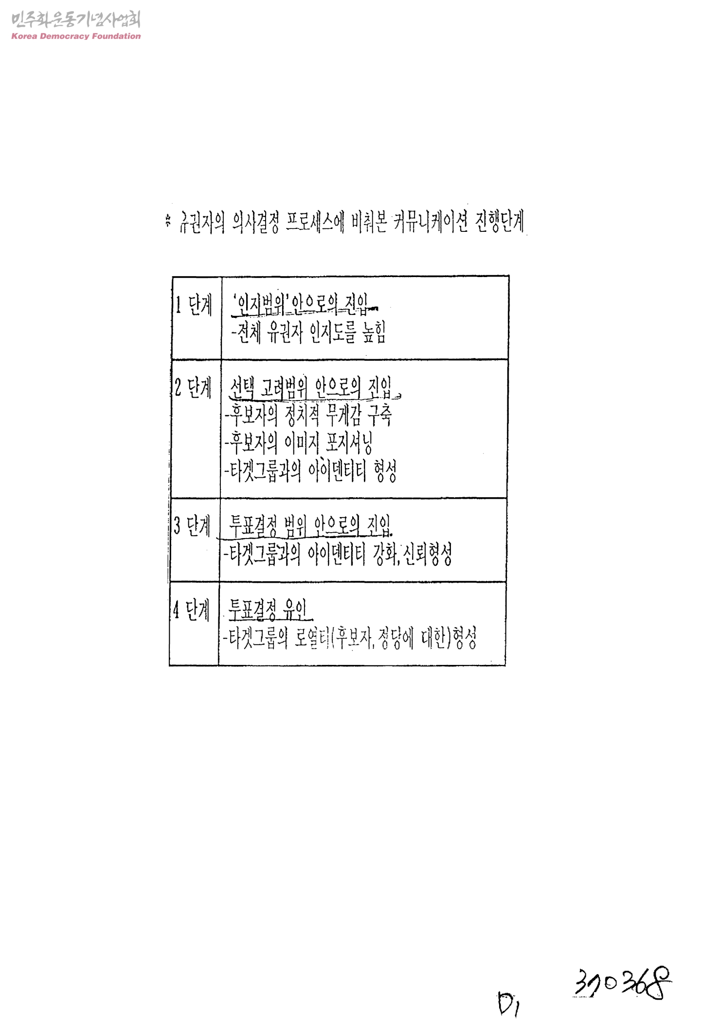 유권자의 의사결정 프로세스에 비춰본 커뮤니케이션 진행단계