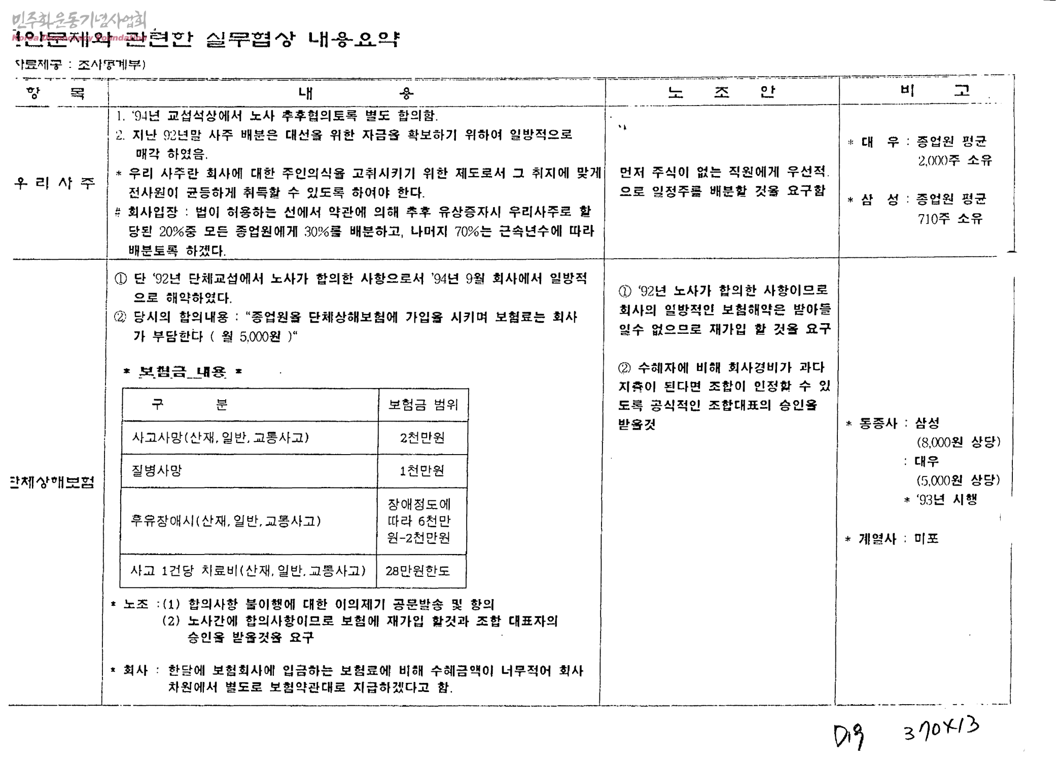 현안문제와 관련한 실무협상 내용요약