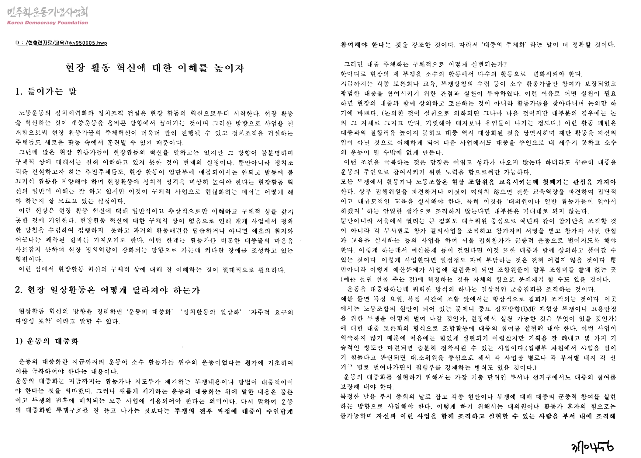 - 1.들어가는 말 2.현장 일상활동은 어떻게 달라져야 하는가 3.지역 주민 사업의 의의와 내용 4.임단투의 의의와 역할