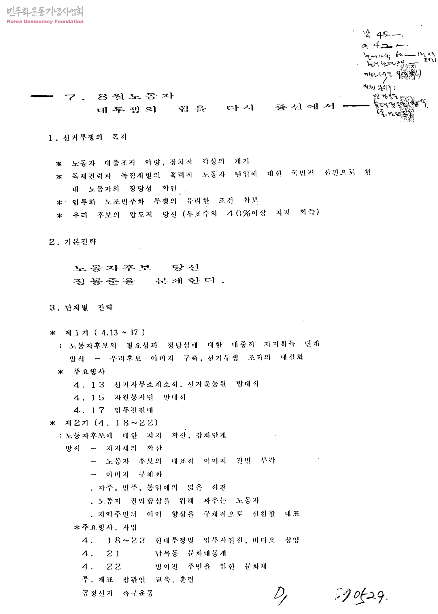 7.8월노동자 대투쟁의 힘을 다시 총선에서