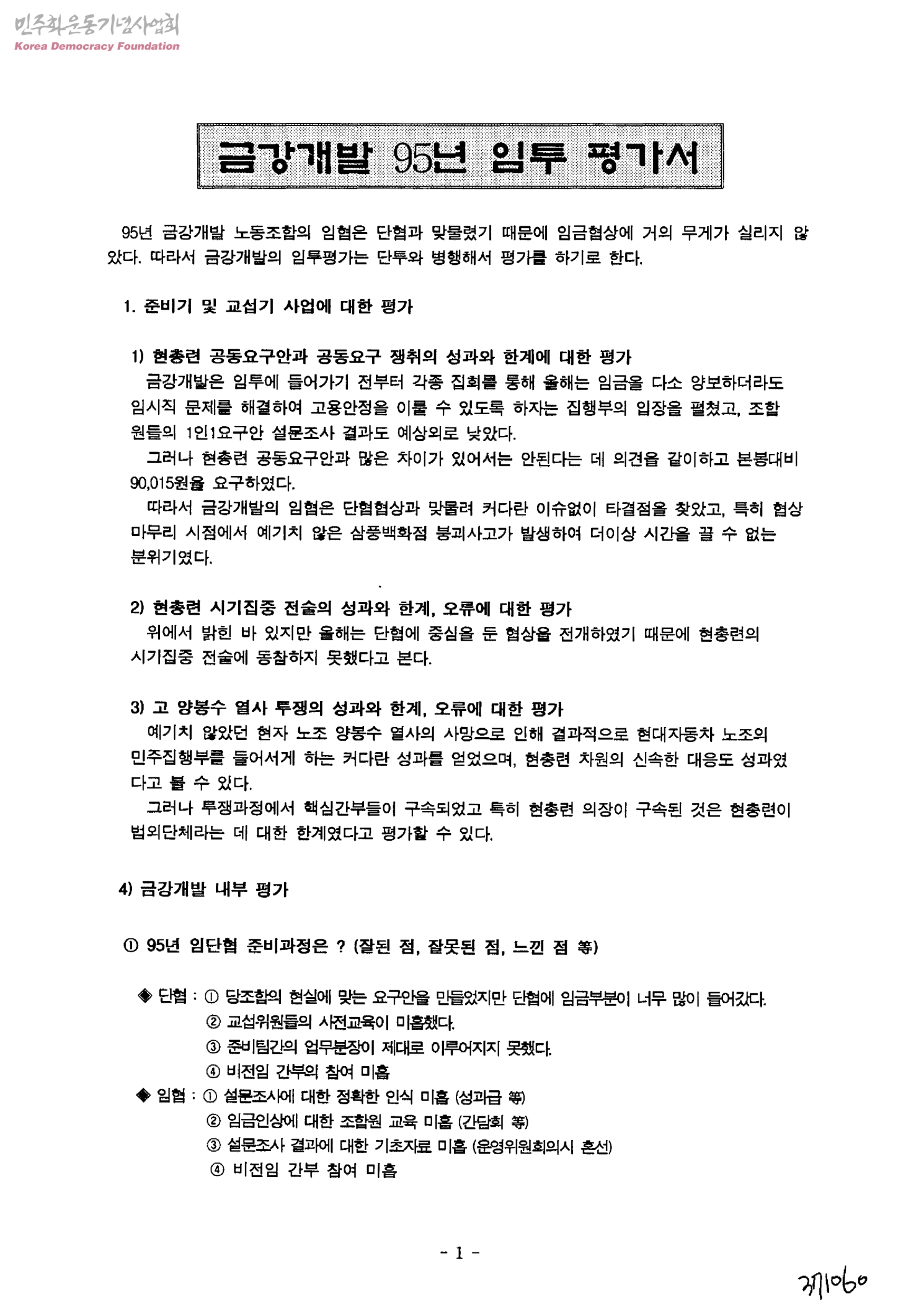 금강개발 95년 임투 평가서