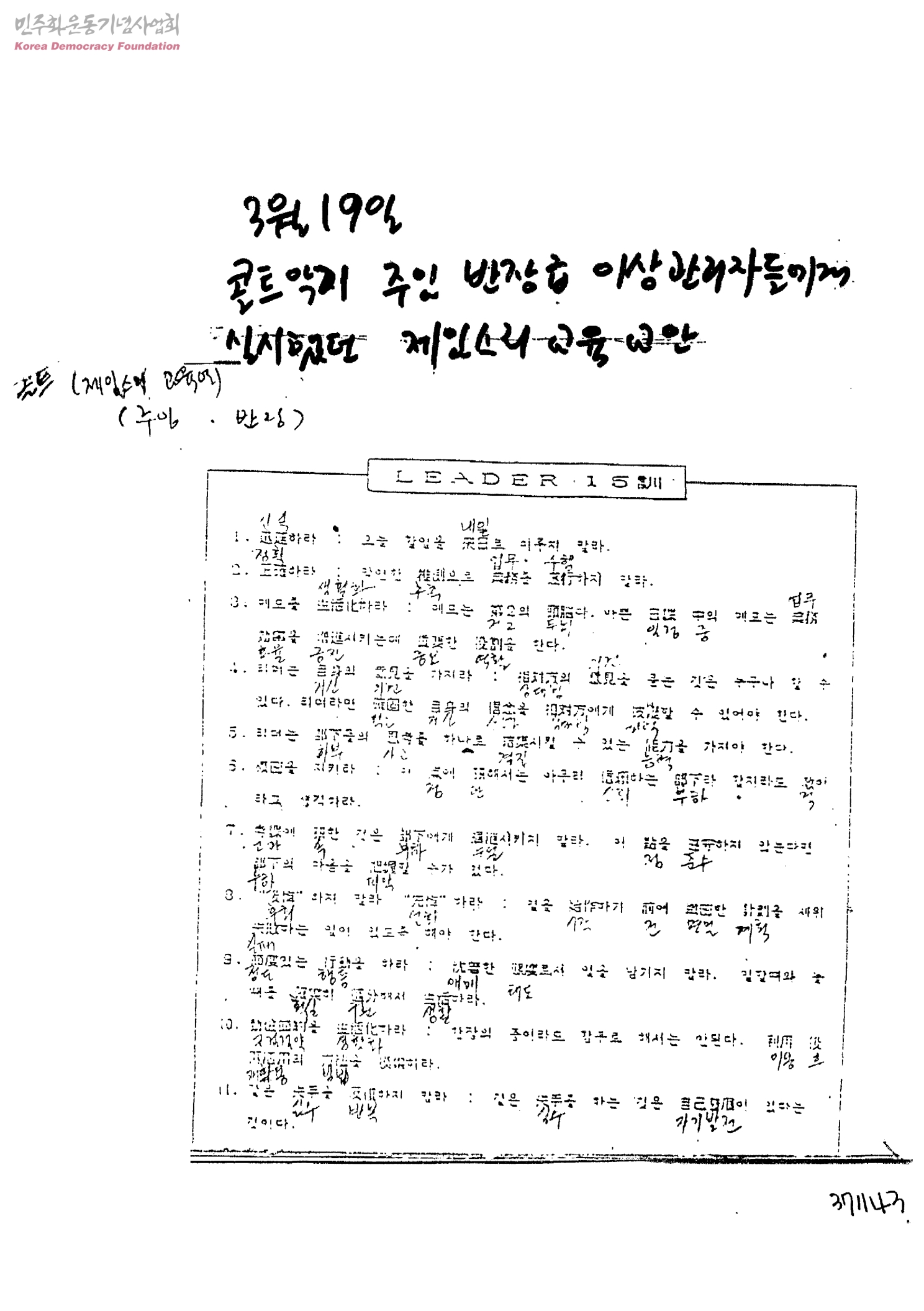 3월 19일 콜트악기 주임 반장급 이상 관리자들에게 실시했던 제임스리 교육 교안